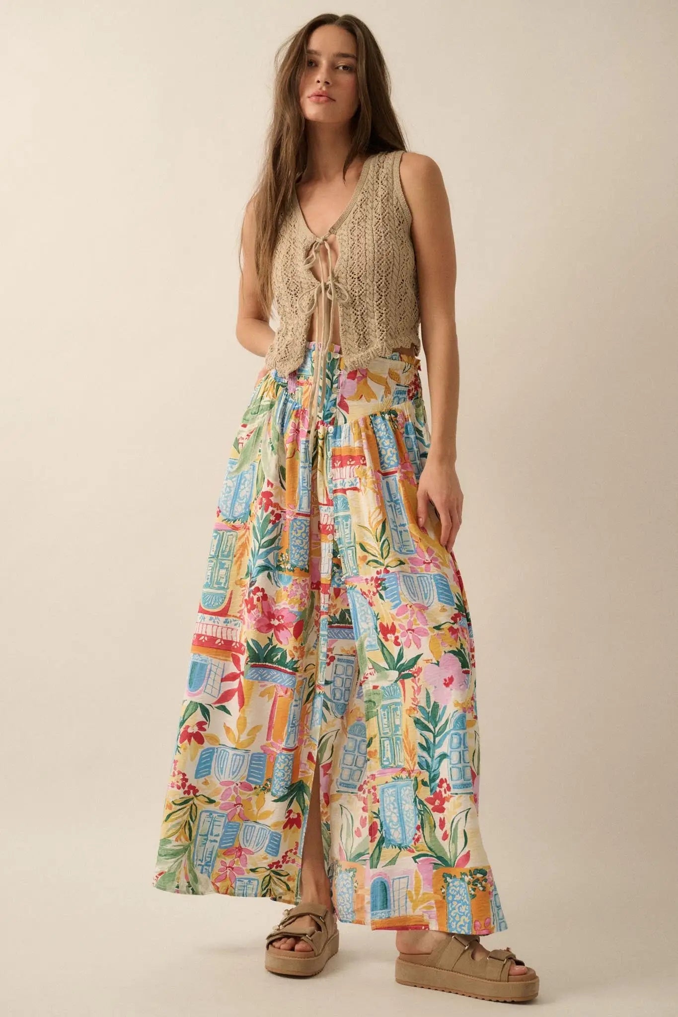 Havana Holiday Tropical Floral Buttoned Maxi Skirt