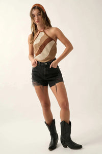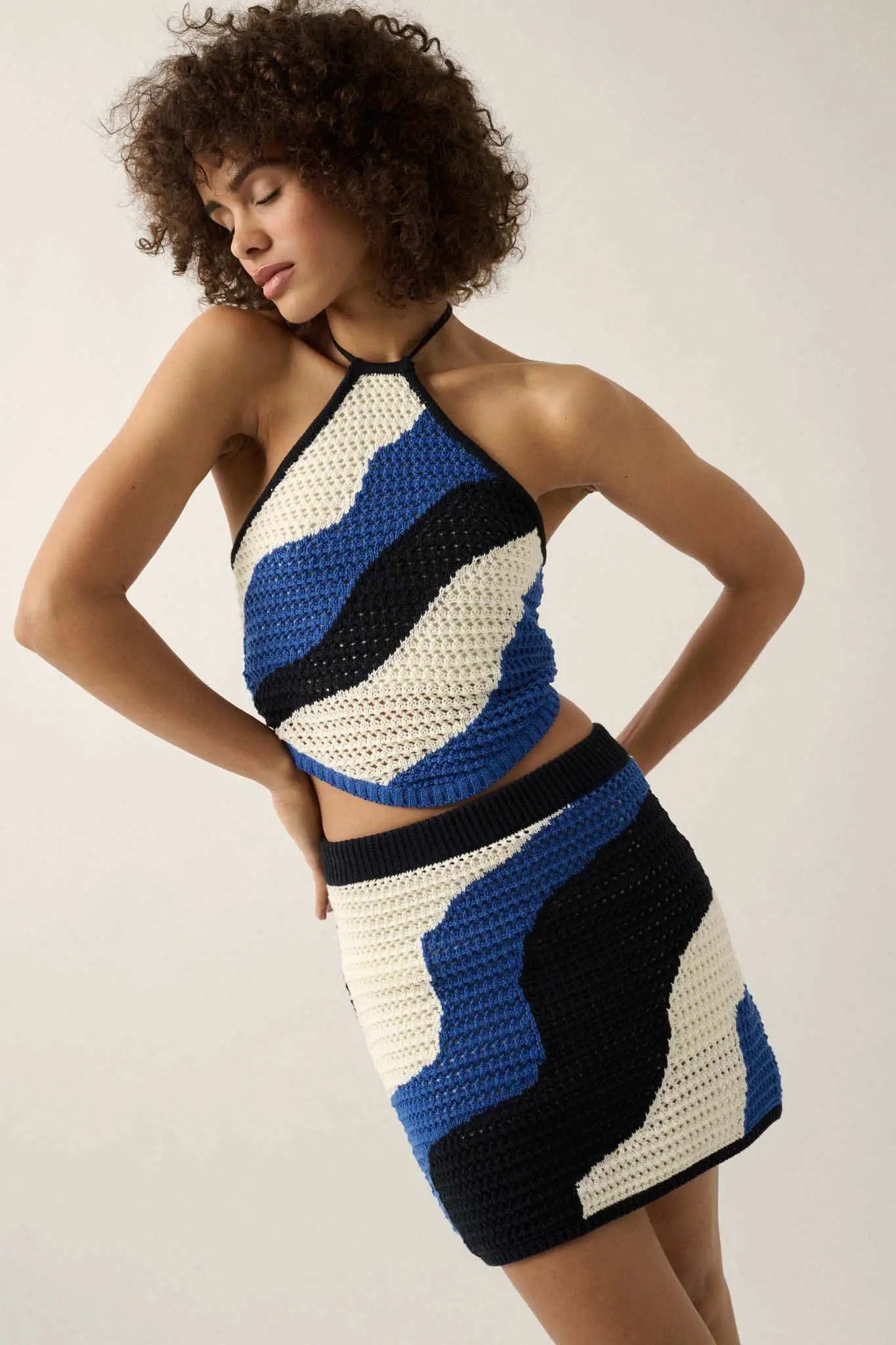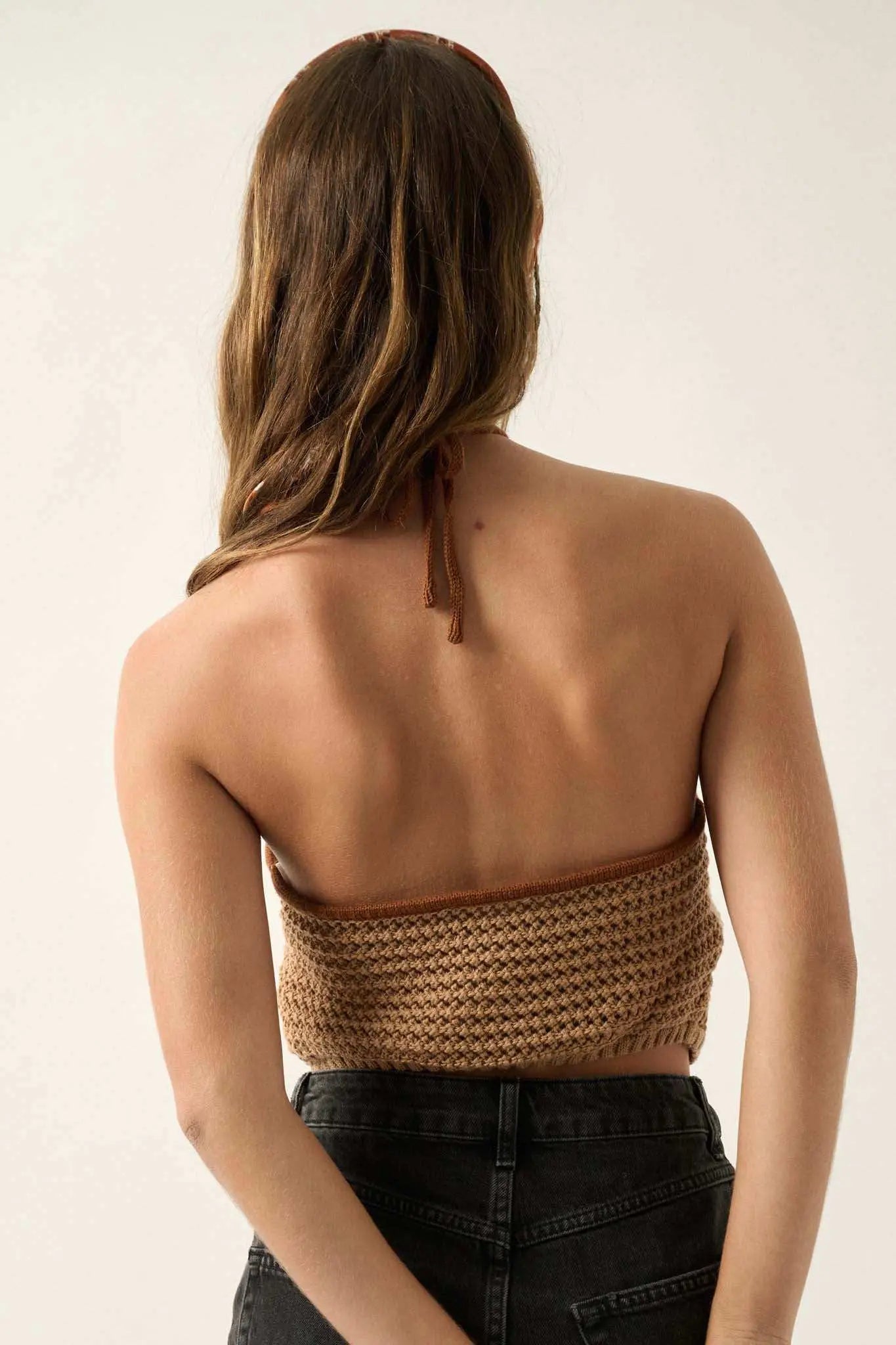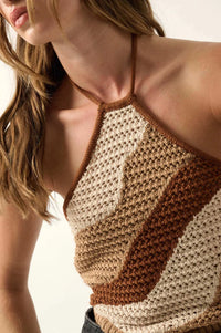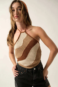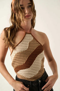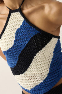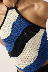 Heat Wave Colorblock Crochet Knit Halter Top - ShopPromesa