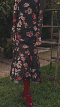 Heritage Blossoms Floral Mesh Mock-Neck Maxi Dress