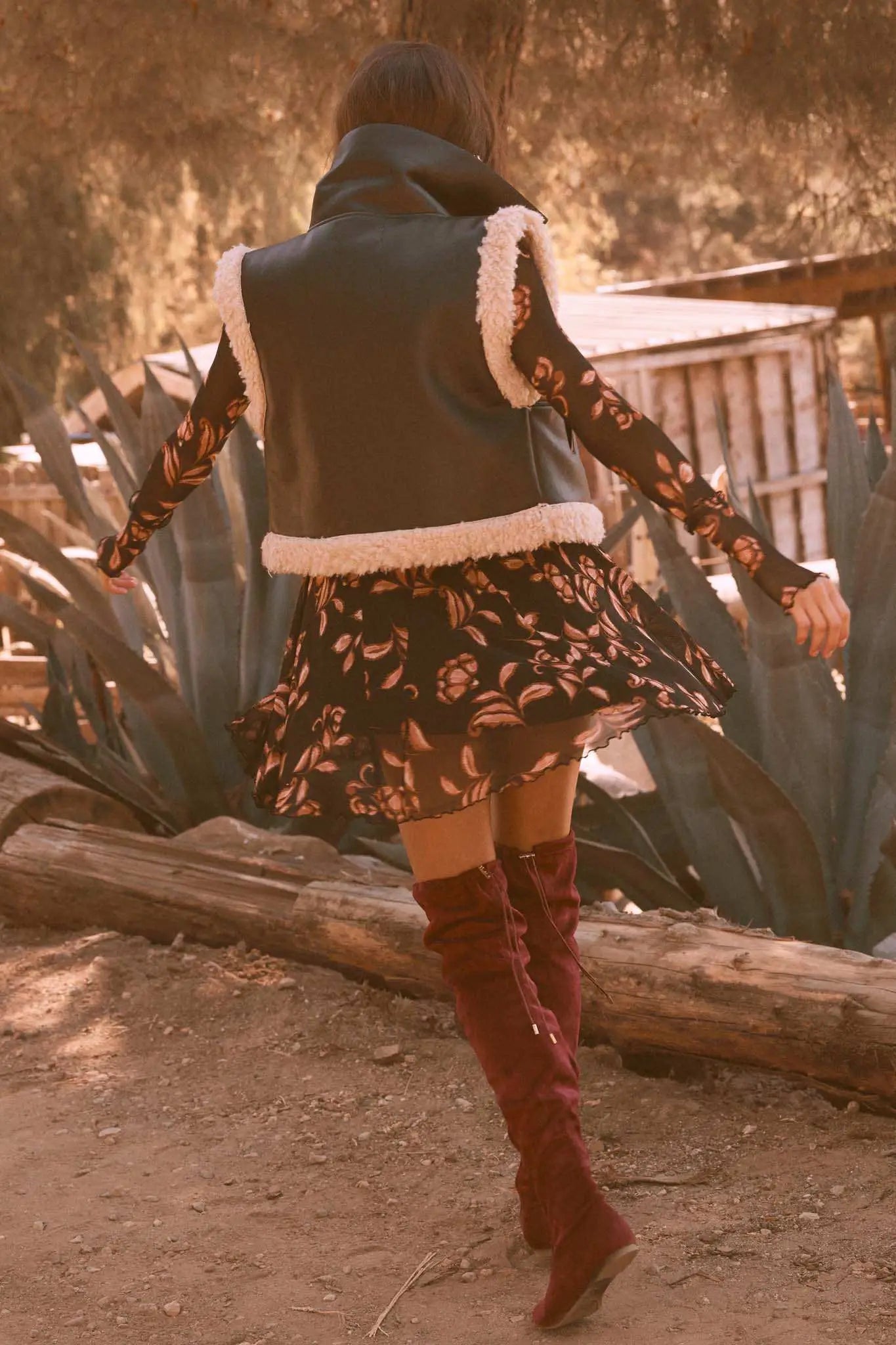 - Faux leather and faux shearling vest.