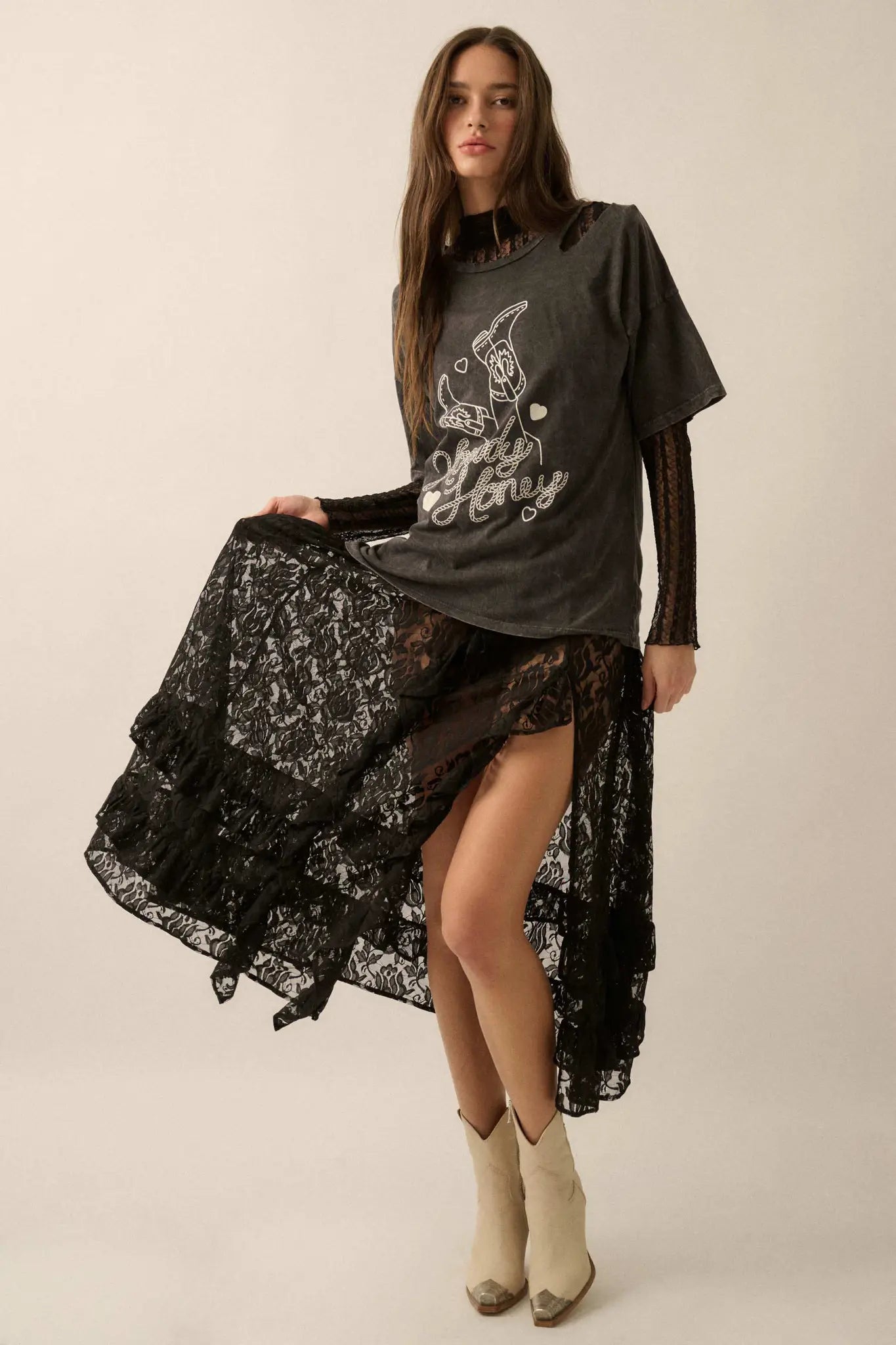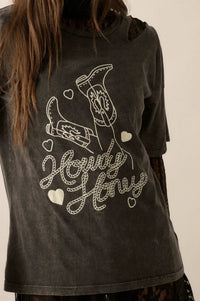 - "Howdy Honey" text print with cowboy boots and hearts graphics.