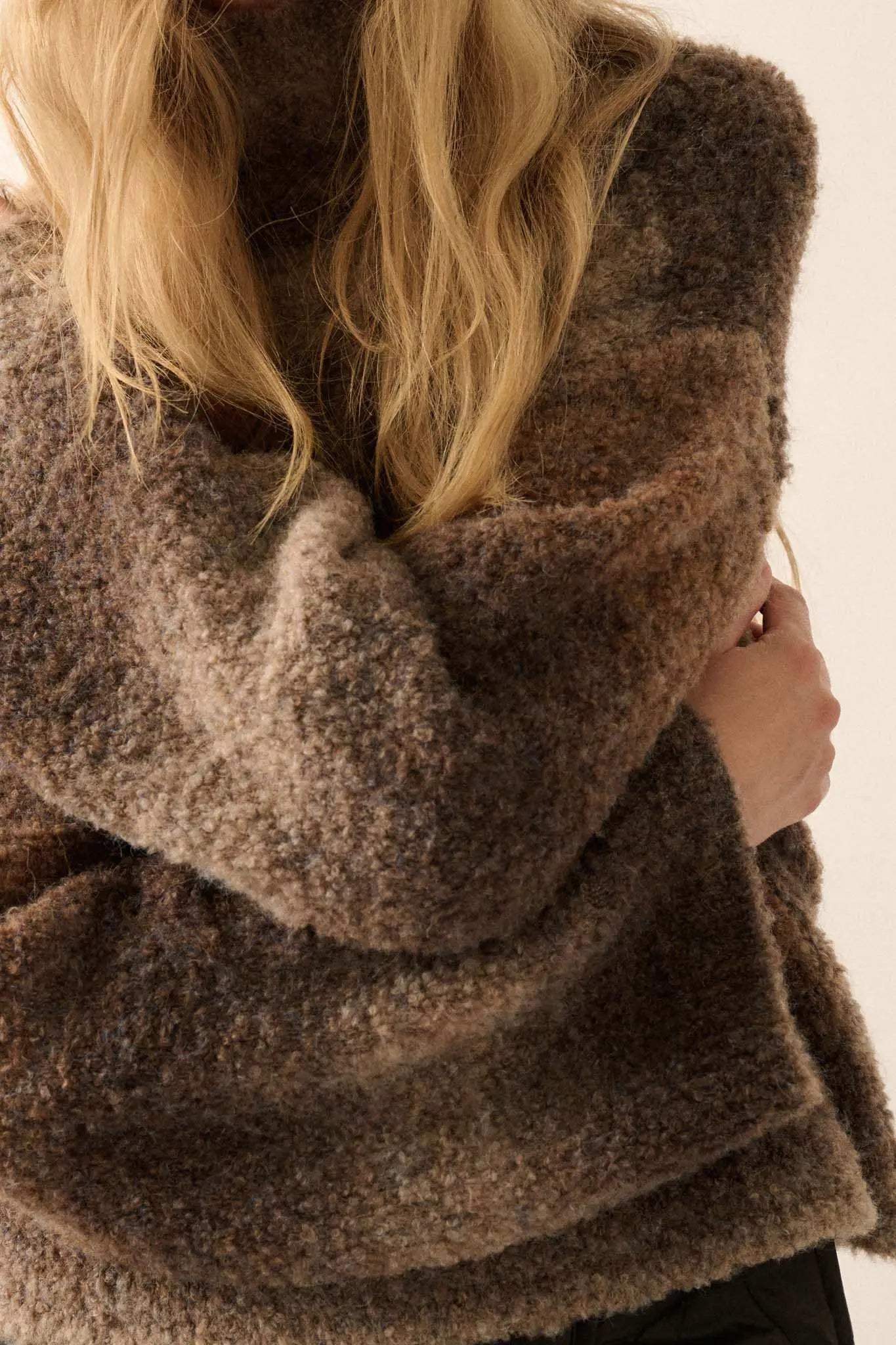 - Textured knit.