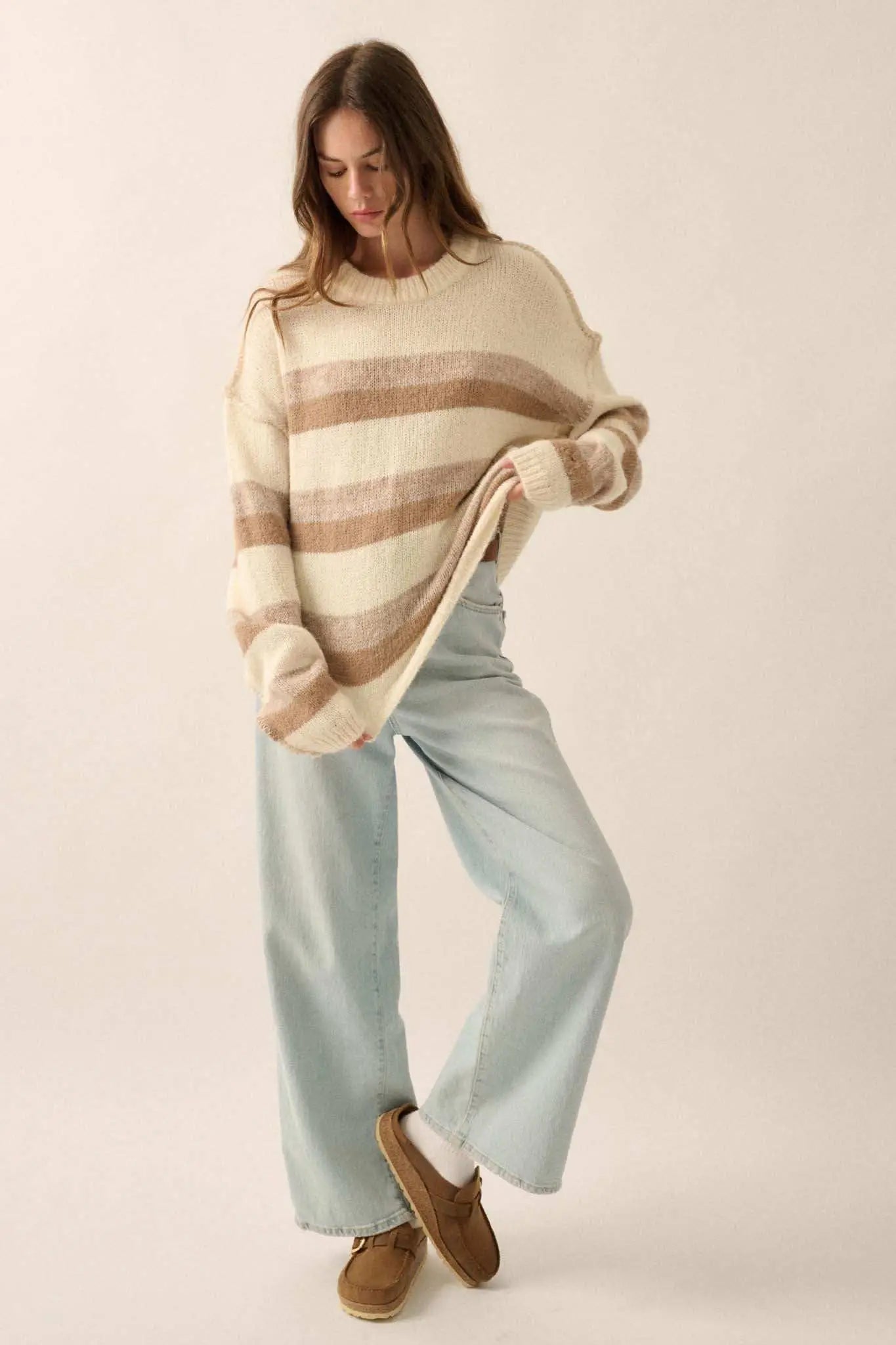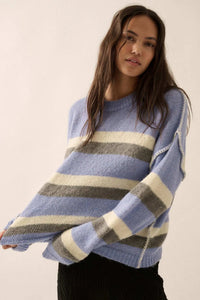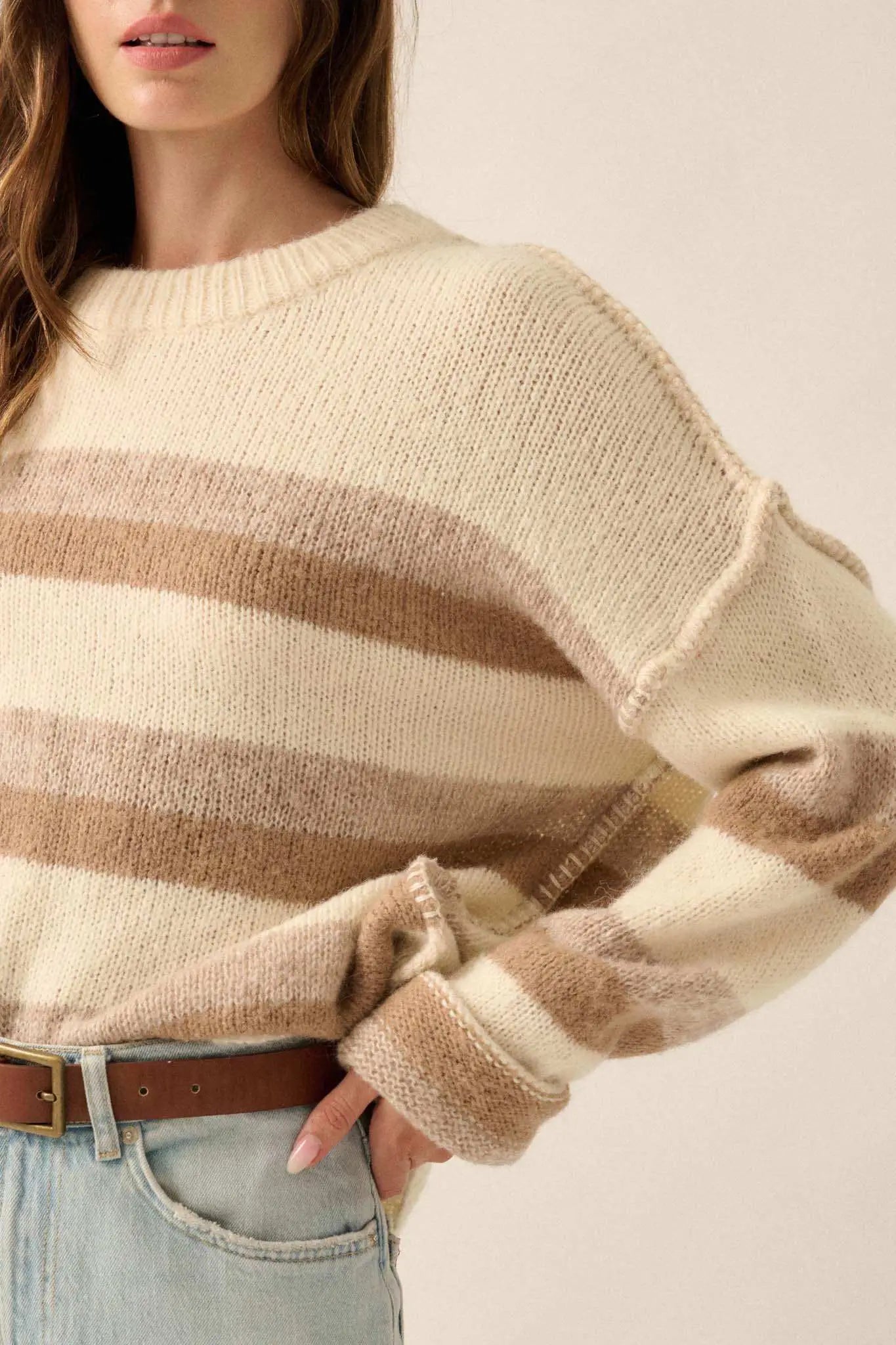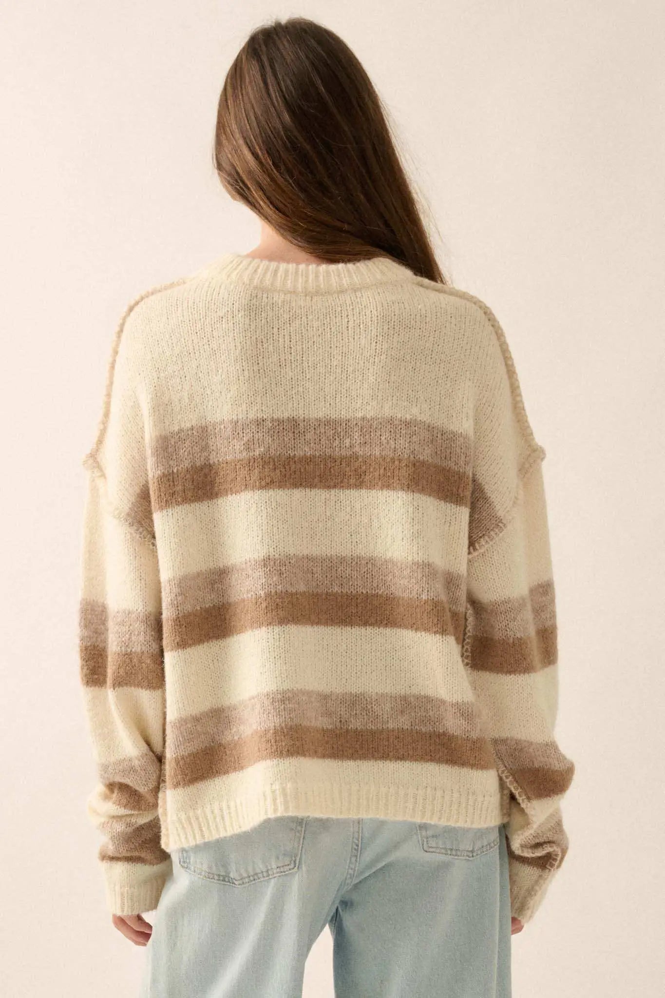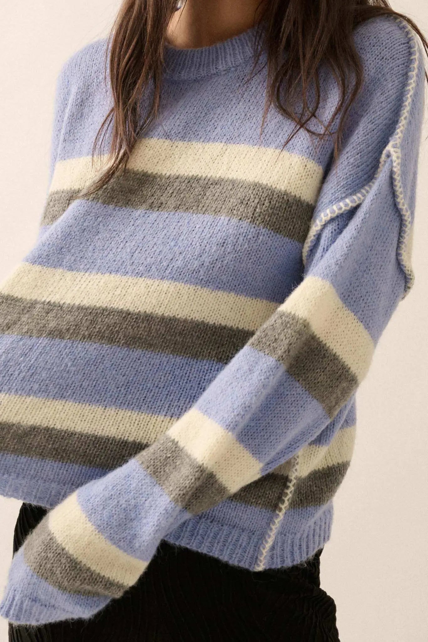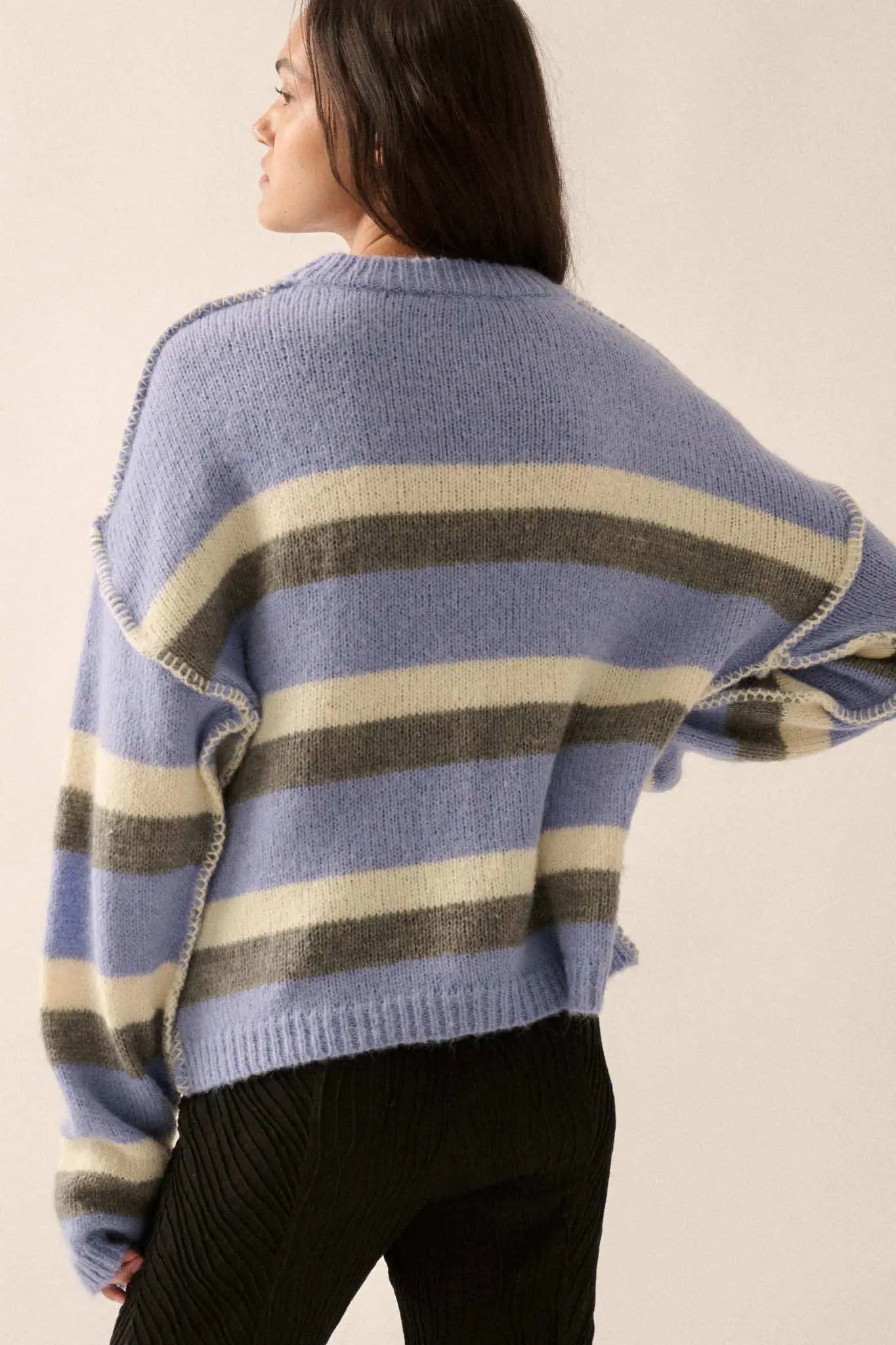 Just My Stripe Exposed-Seam Striped Knit Sweater - ShopPromesa