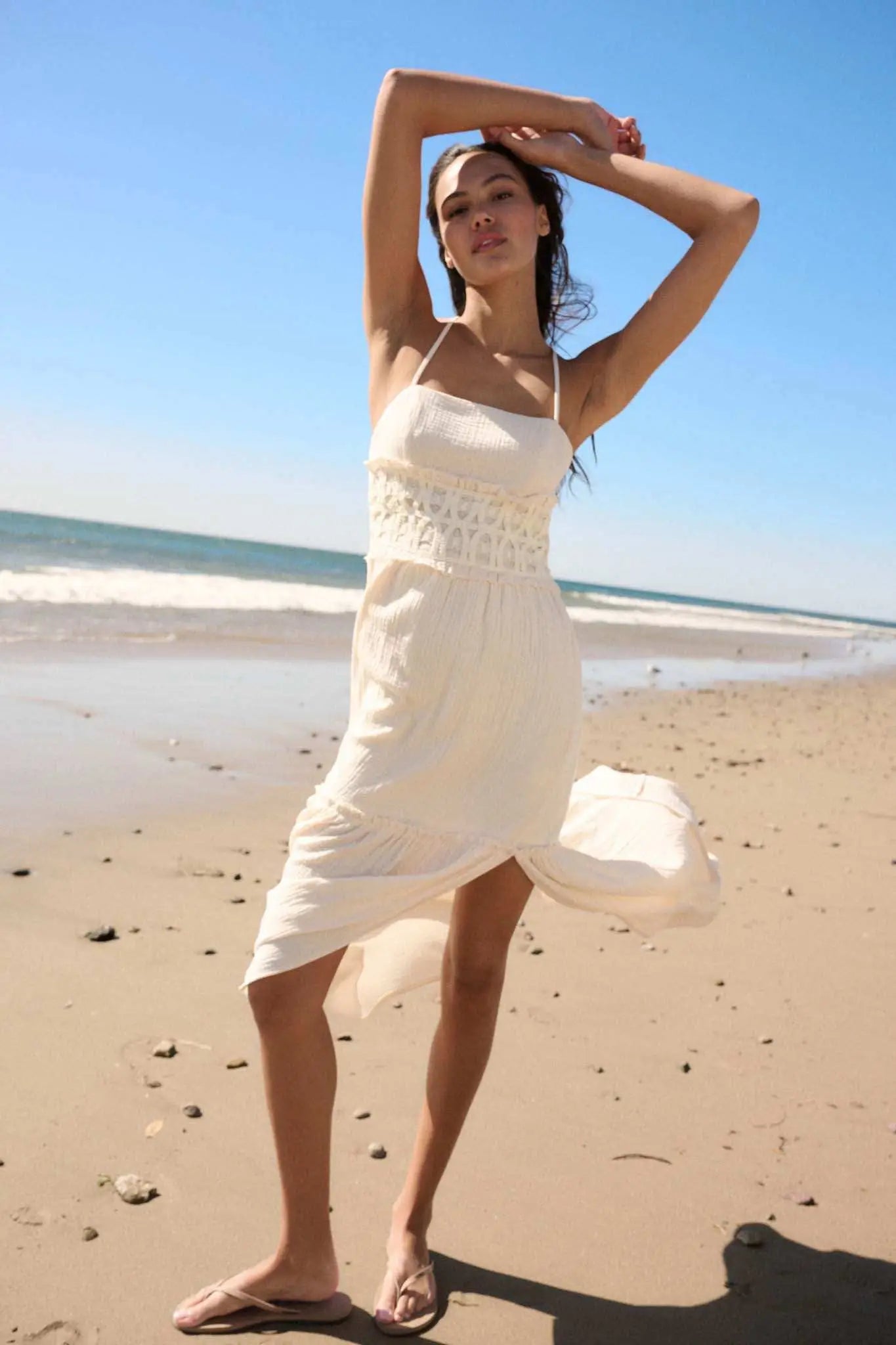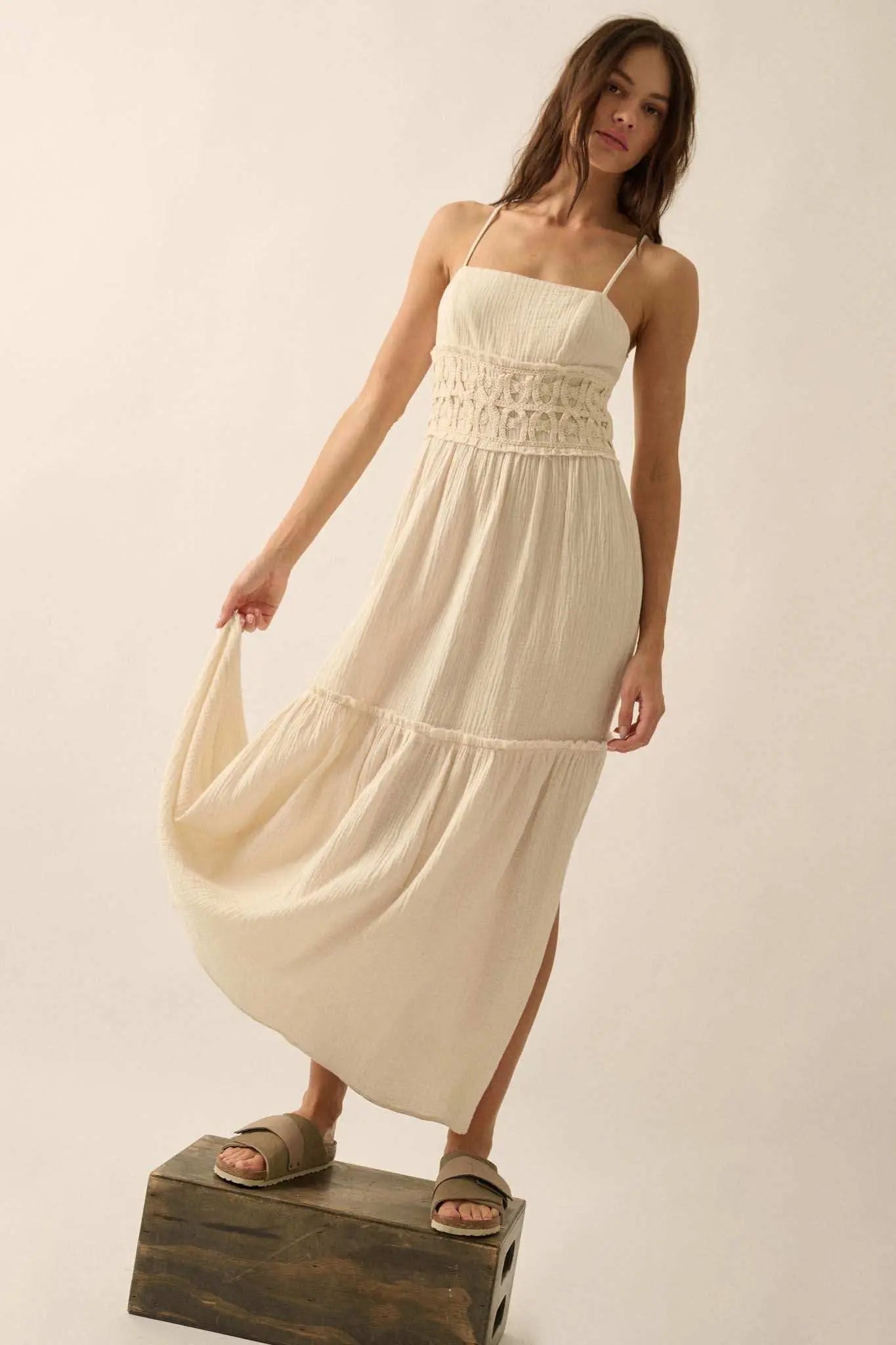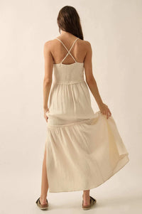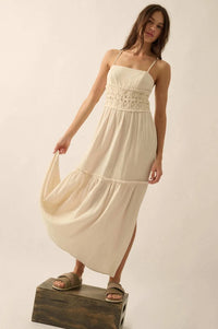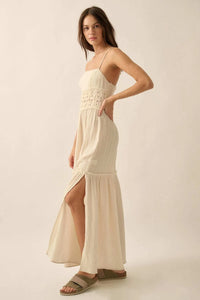 Laced Out Crochet-Trim Crinkle Cotton Maxi Dress - ShopPromesa