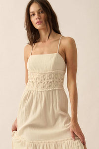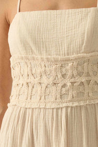 Laced Out Crochet-Trim Crinkle Cotton Maxi Dress