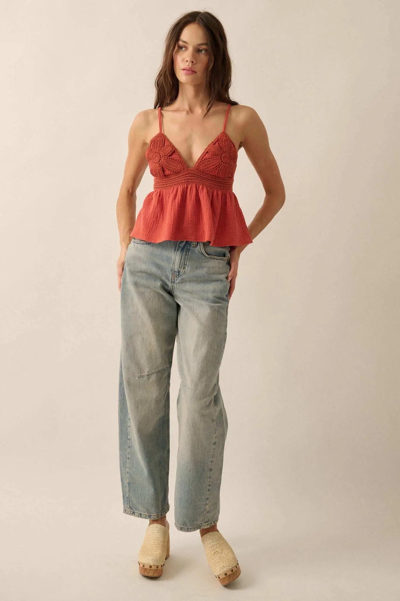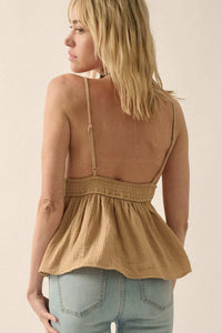 - Solid cotton gauze cami top.