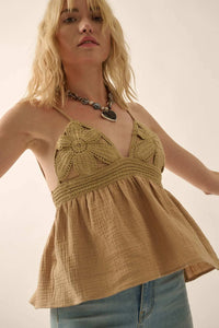 Lacy Days Crochet-Trim Crinkle Cotton Babydoll Top