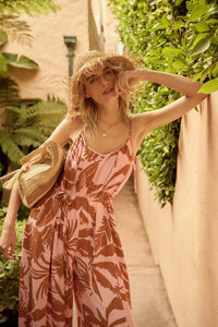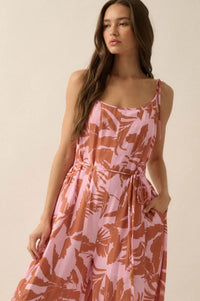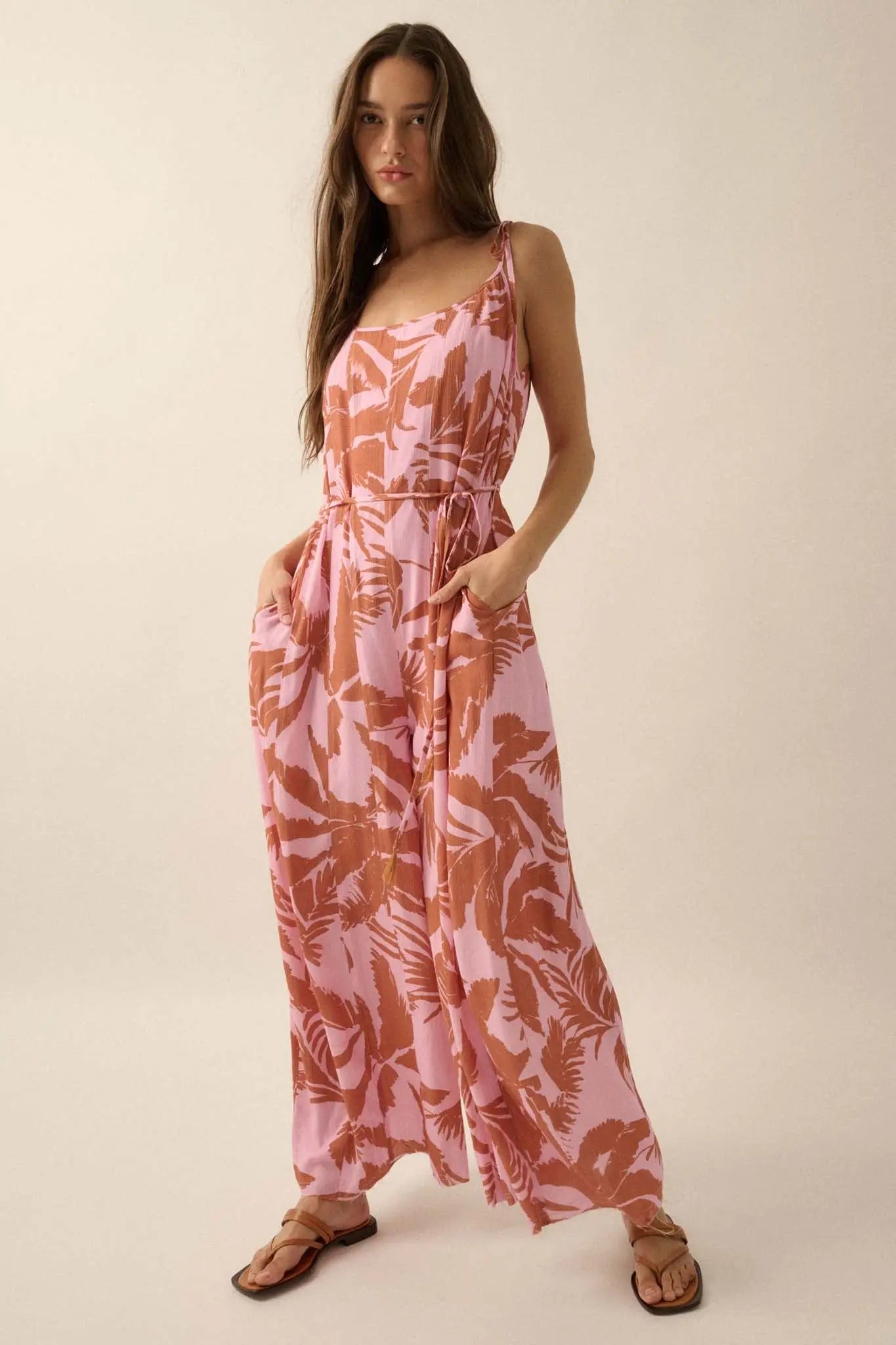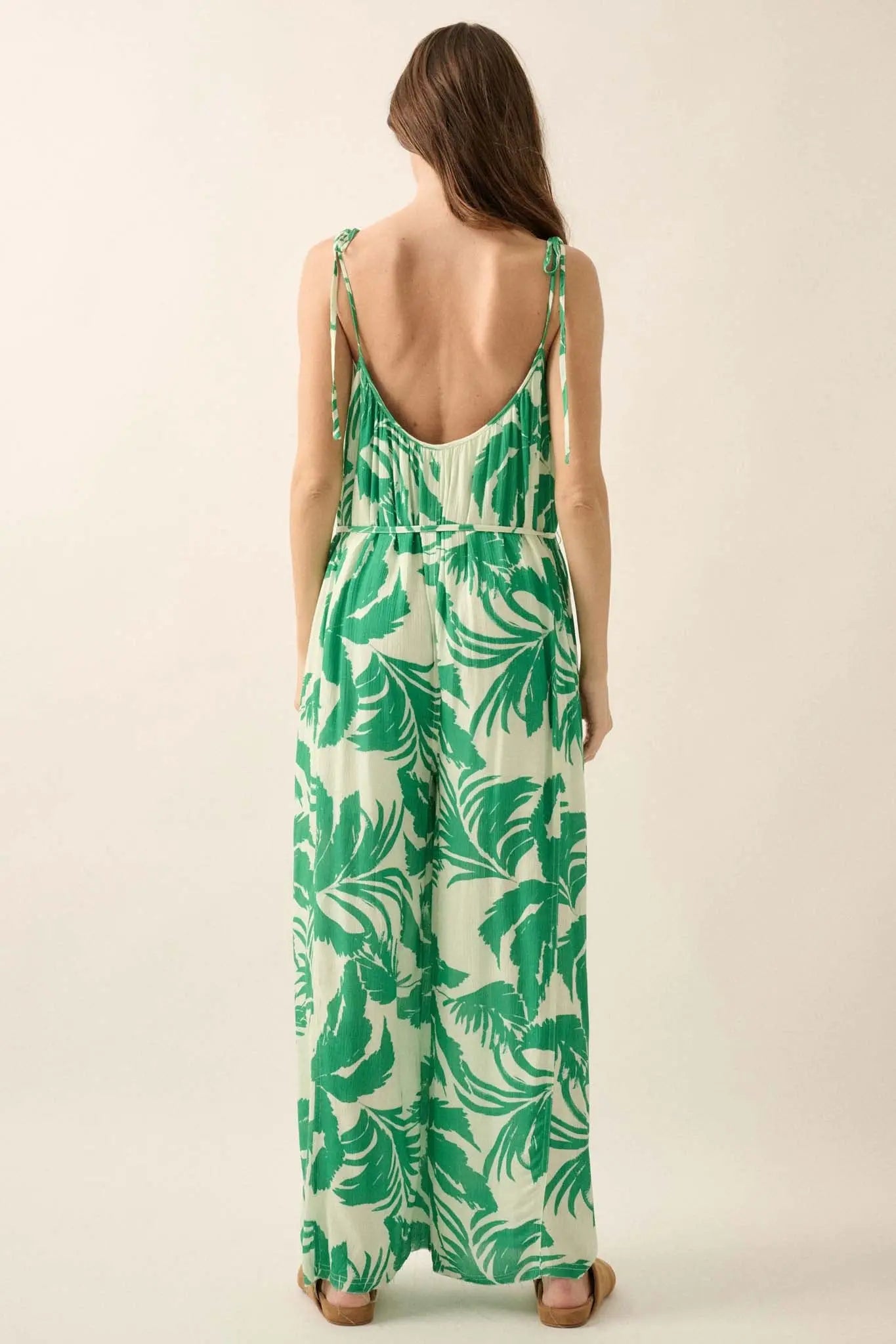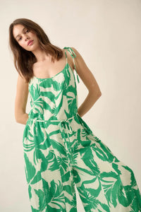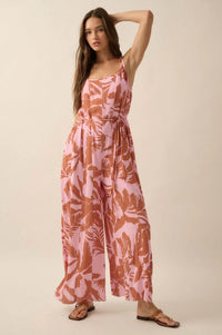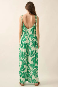 Leaf Me Be Tropical Belted Wide-Leg Jumpsuit