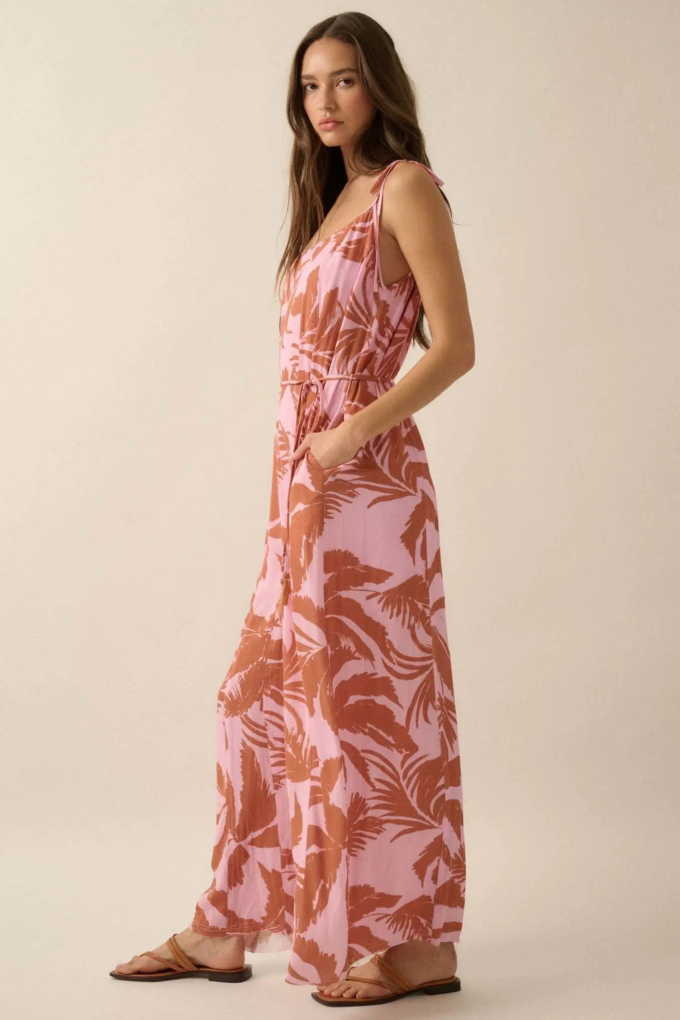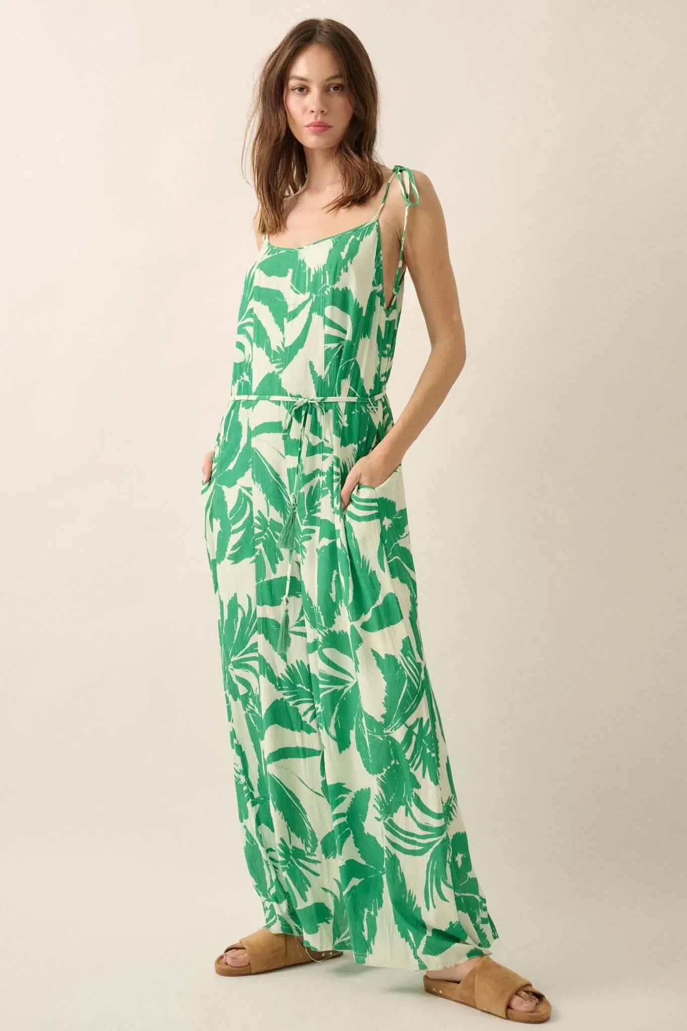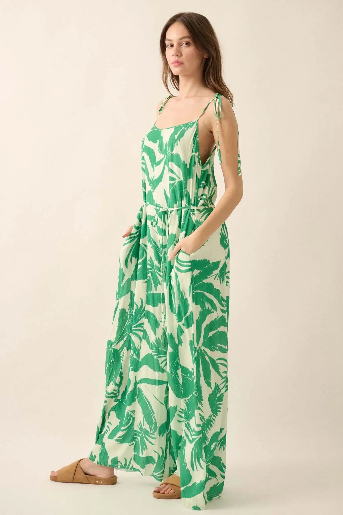Leaf Me Be Tropical Belted Wide-Leg Jumpsuit