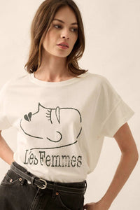 - Vintage-style "Les Femmes" text print with modern art face graphic.