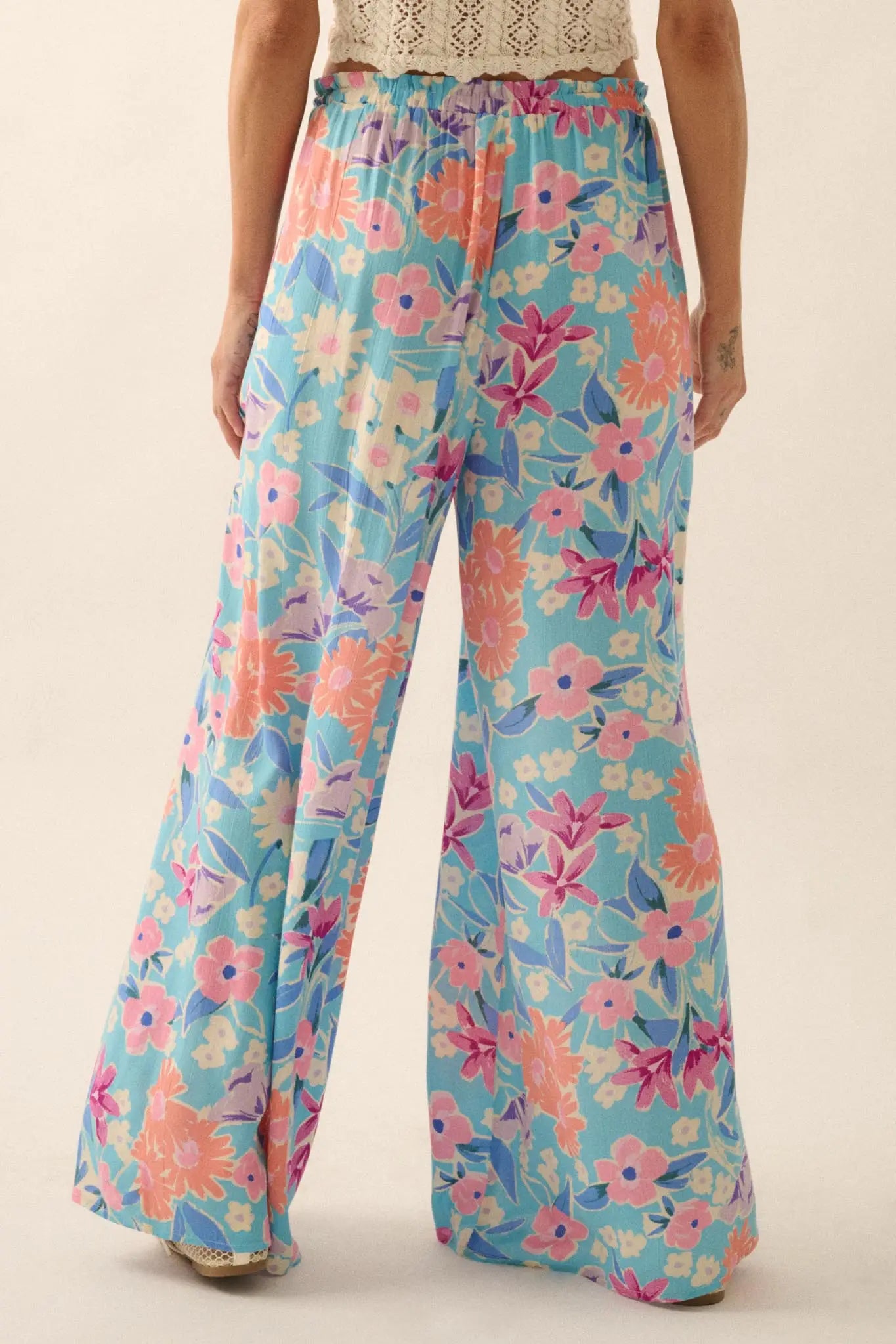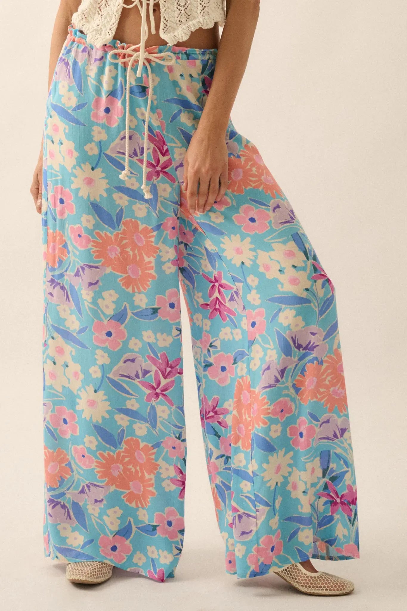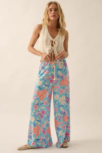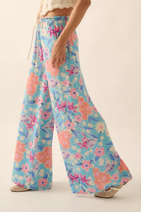 Let It Grow Floral Crepe Wide-Leg Drawstring Pants