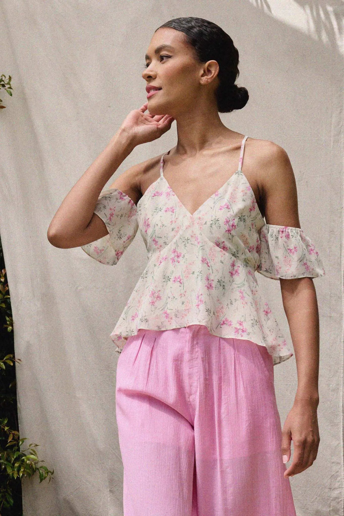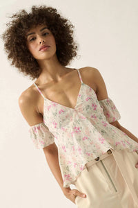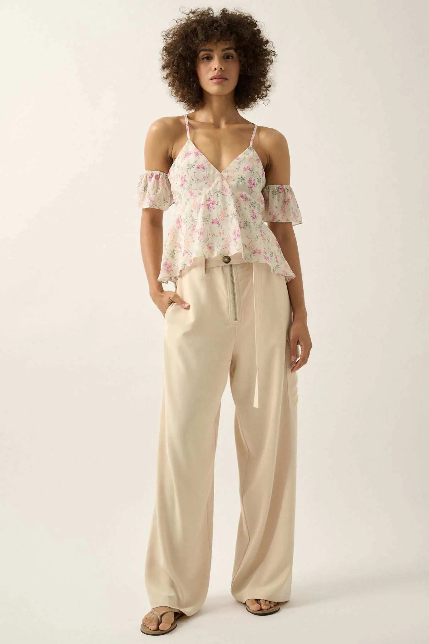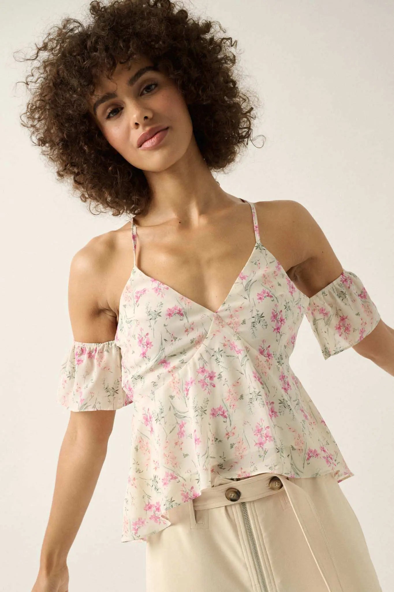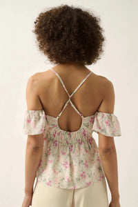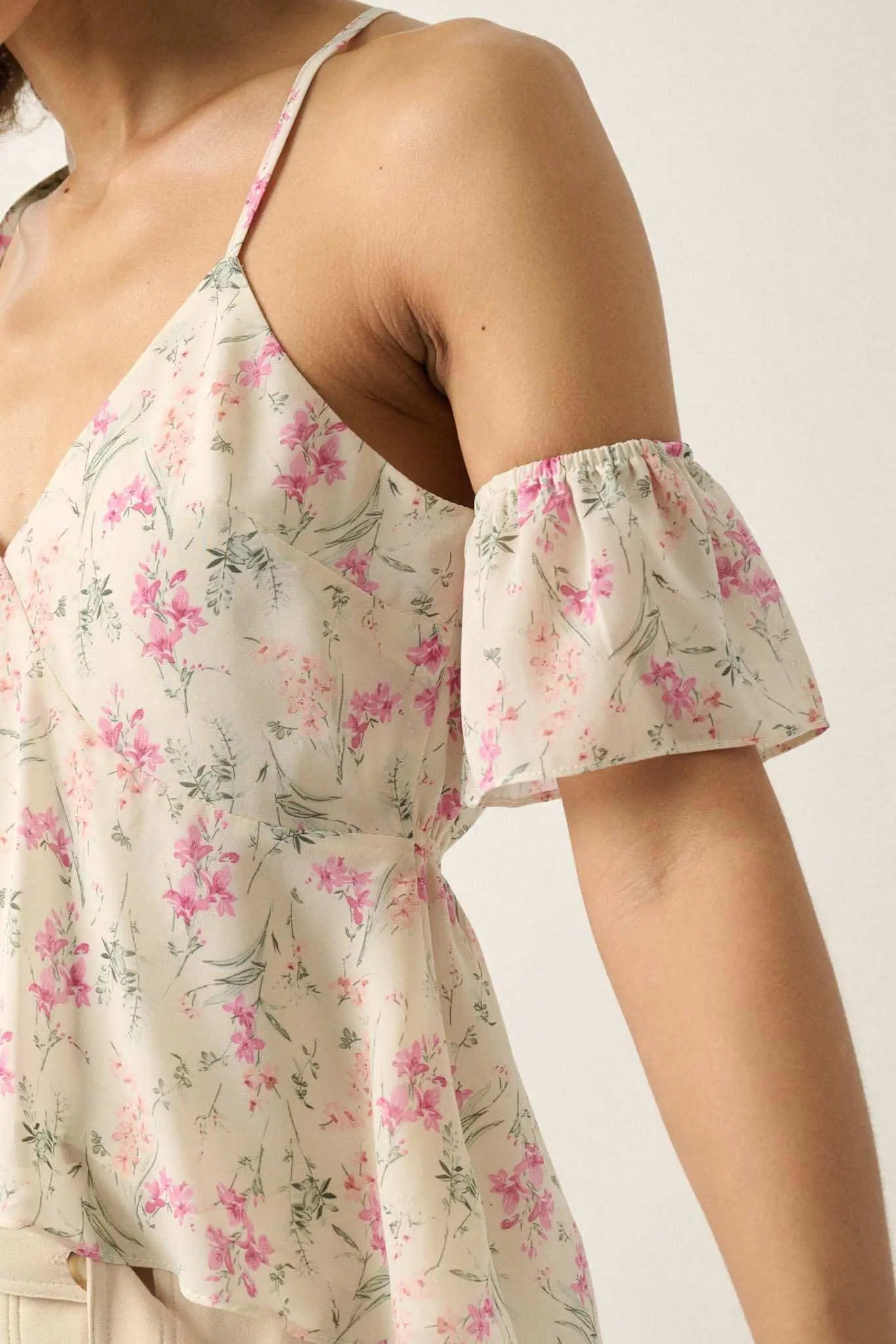 Lily Lover Floral Chiffon Cold Shoulder Cami Top