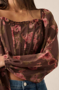 Love Is a Rose Floral Chiffon Cropped Corset Top