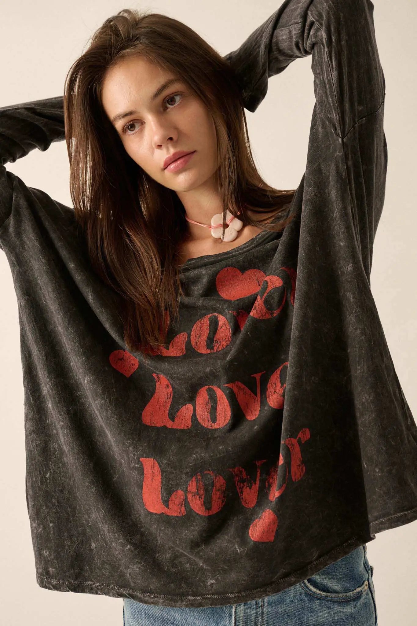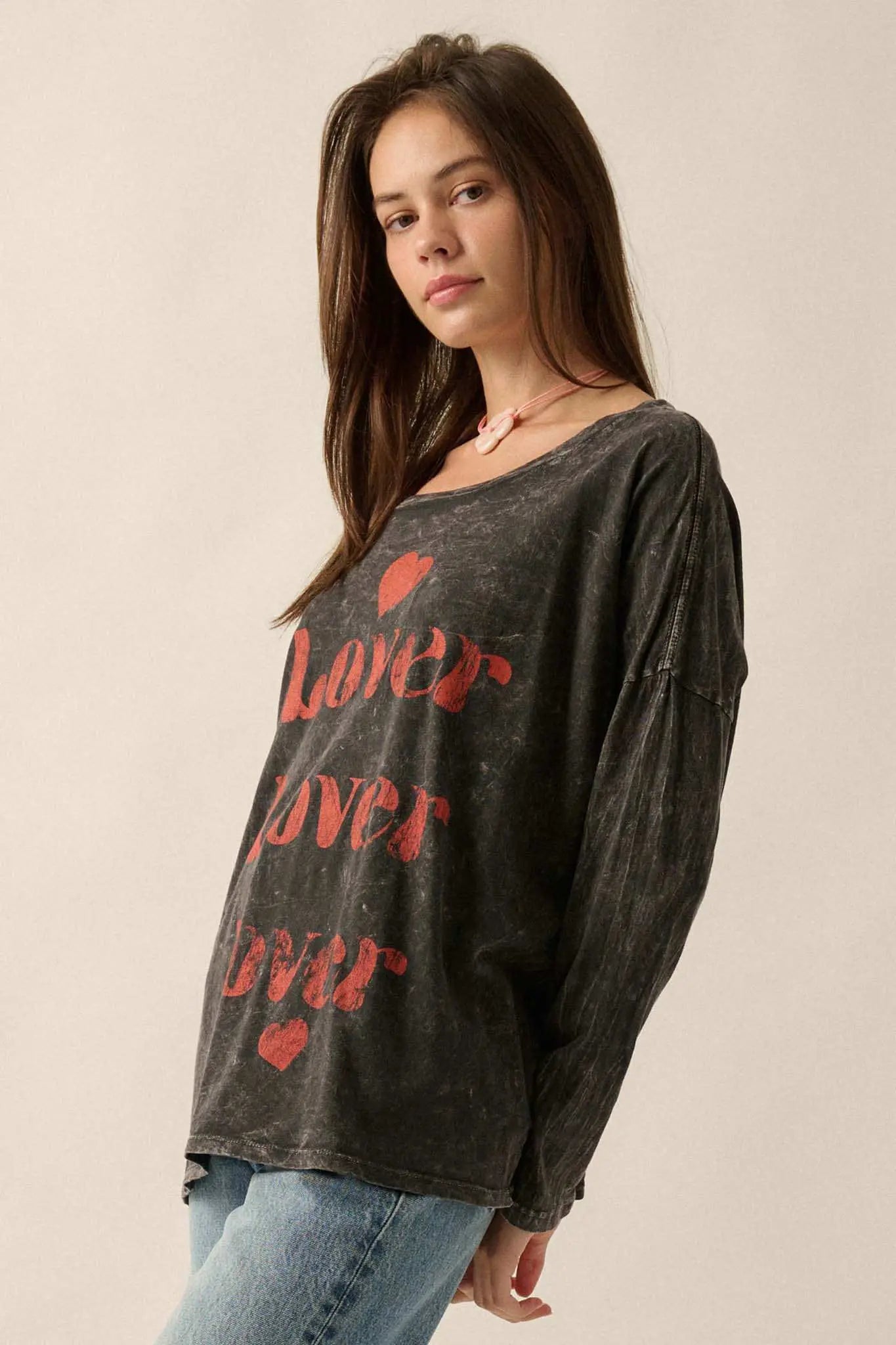 Lover Vintage-Print Long-Sleeve Graphic Tee