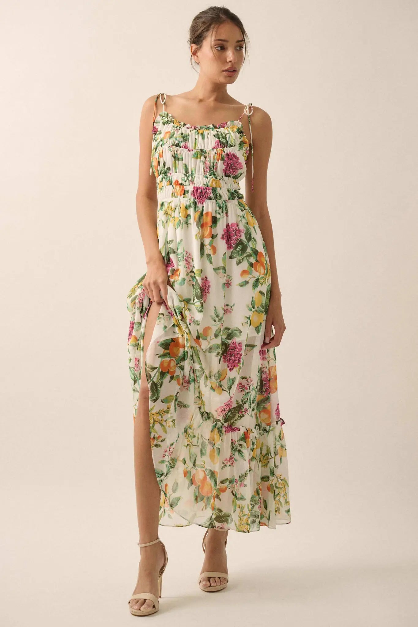 Luscious Life Fruit-Print Gathered Maxi Dress