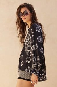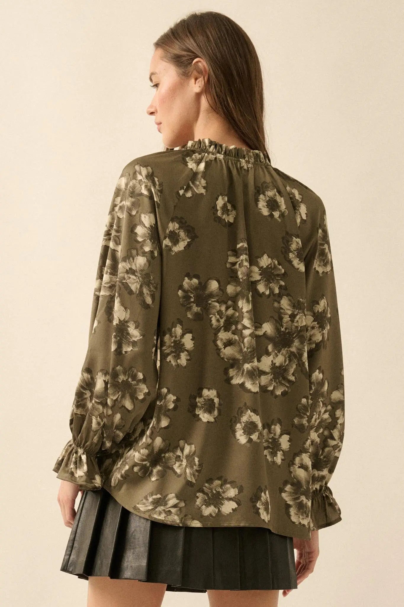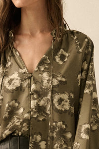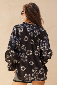 Lush Living Floral Satin Button-Up Peasant Top