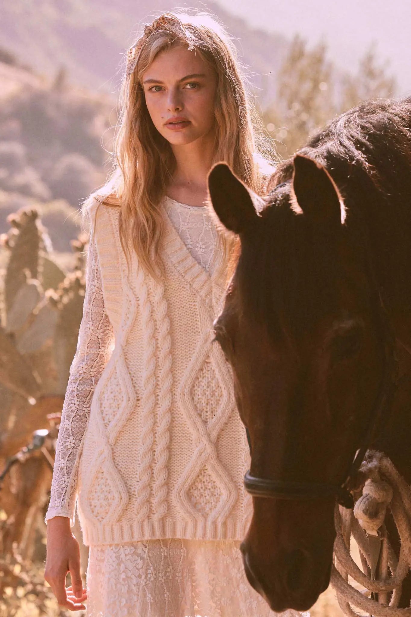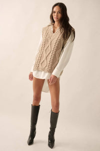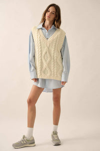 Making the Grade Oversize Cable Knit Sweater Vest - ShopPromesa