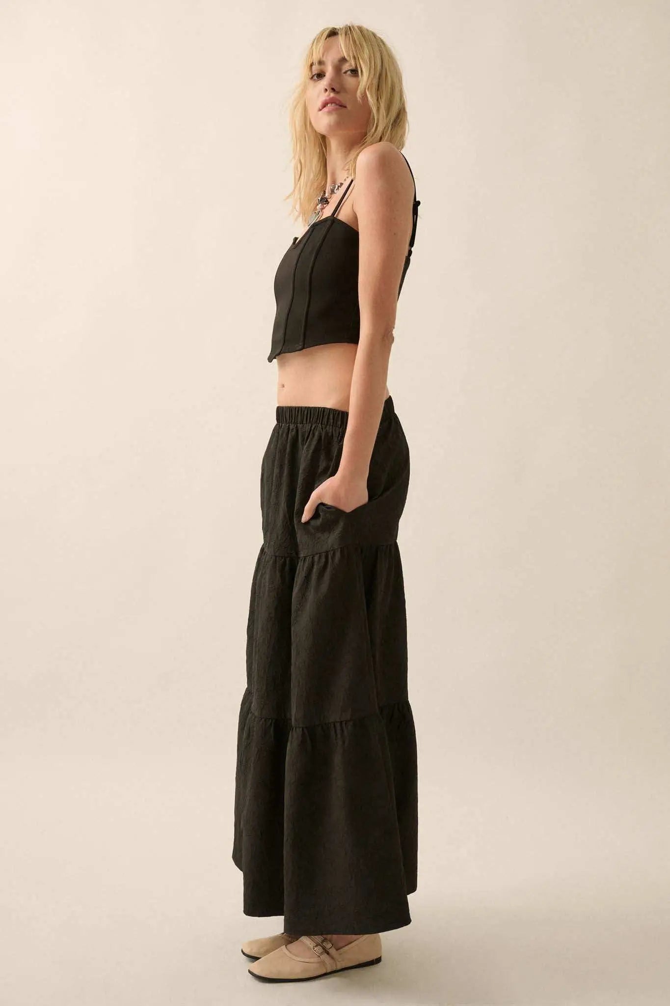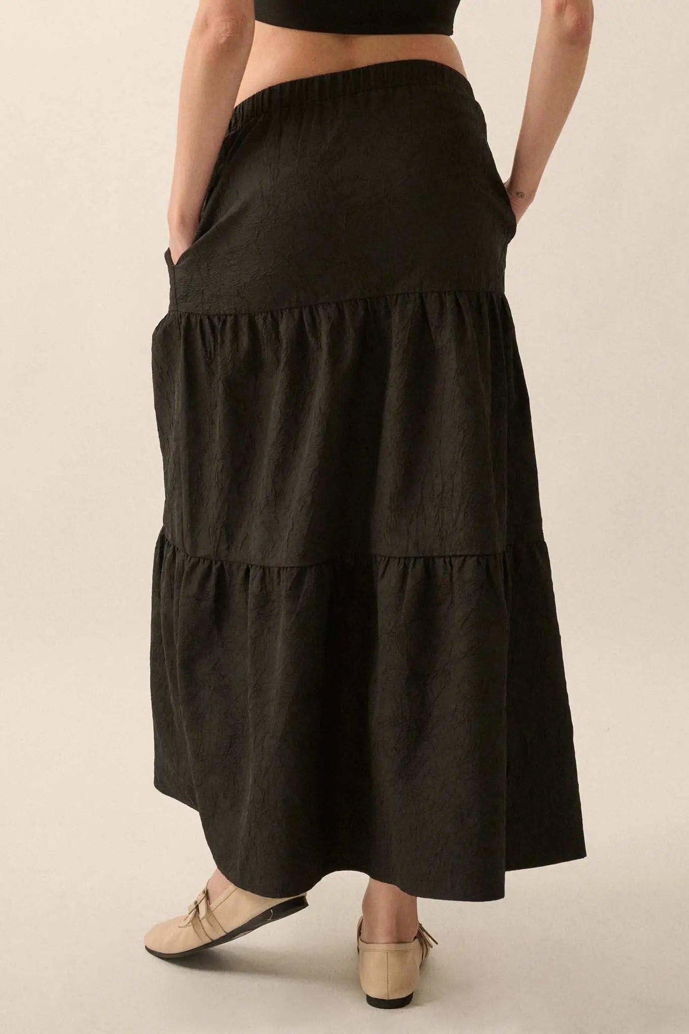 Mellow Out Textured Tiered Ruffle Maxi Skirt
