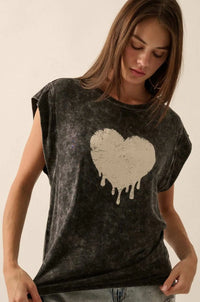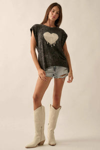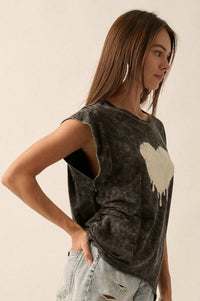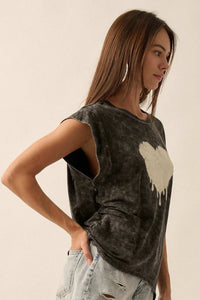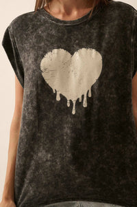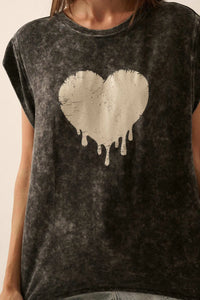 Melting Heart Vintage-Wash Cap-Sleeve Graphic Tee