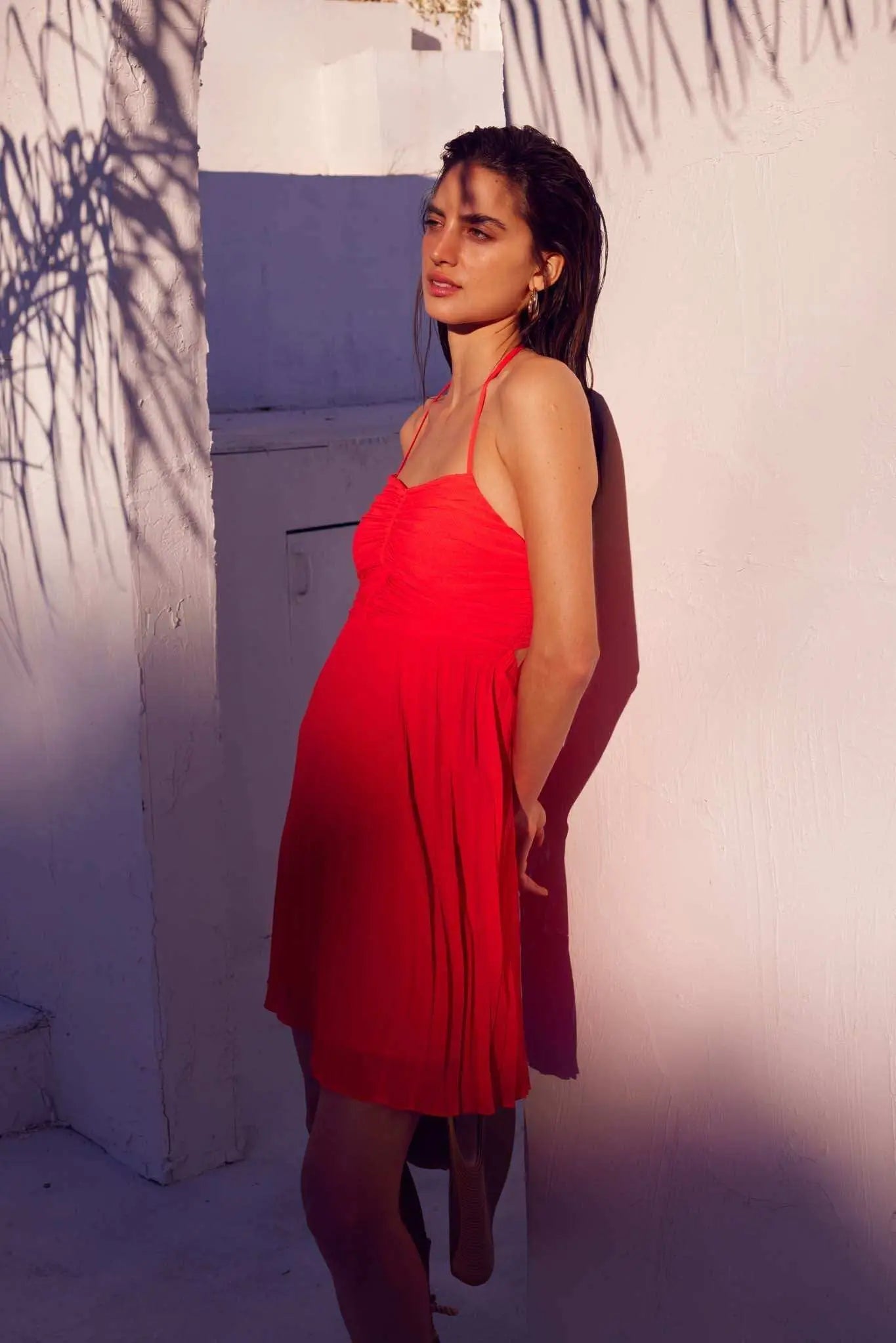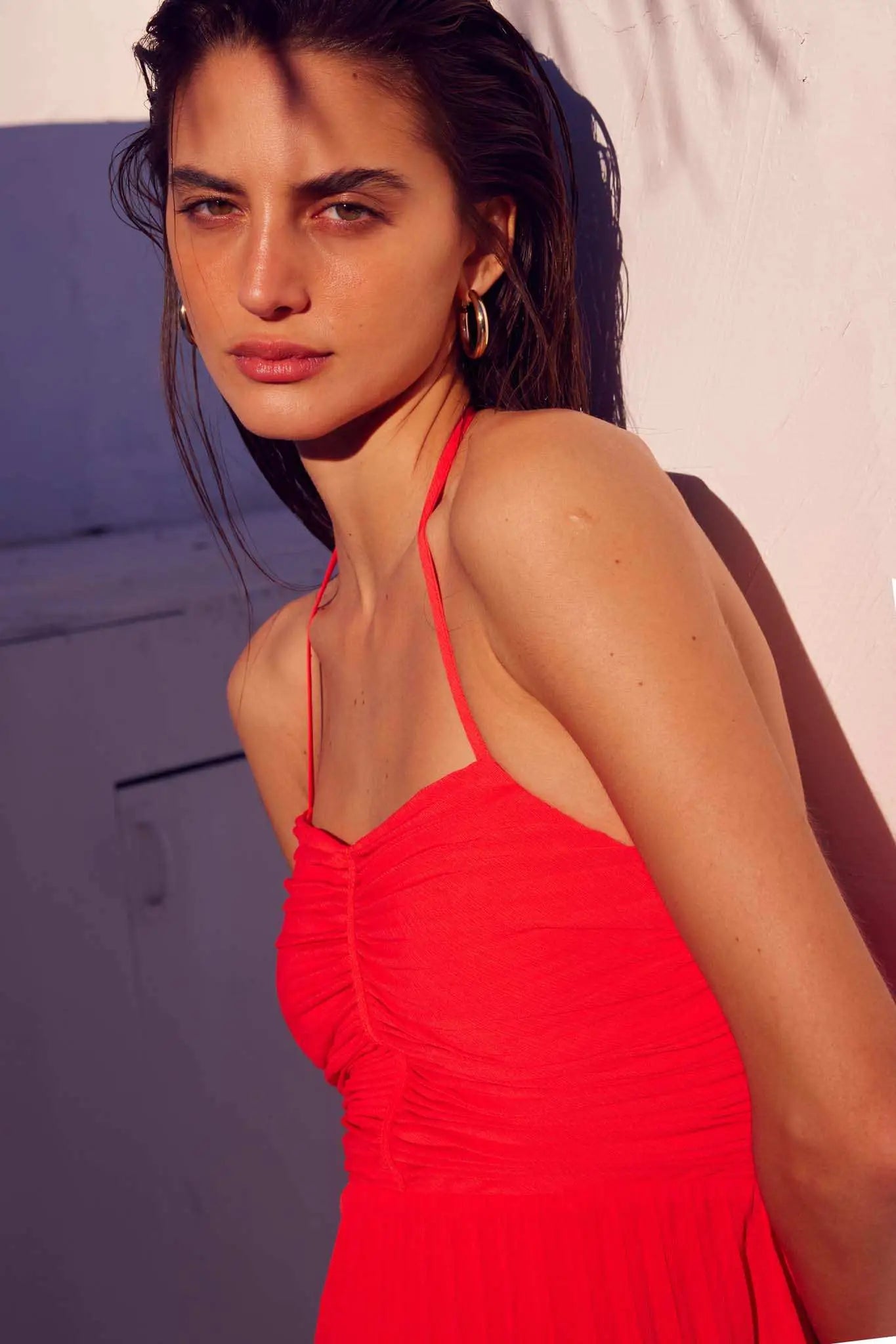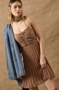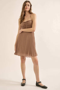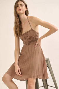 Mucho Mambo Accordion Pleated Halter Mini Dress - ShopPromesa