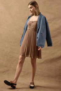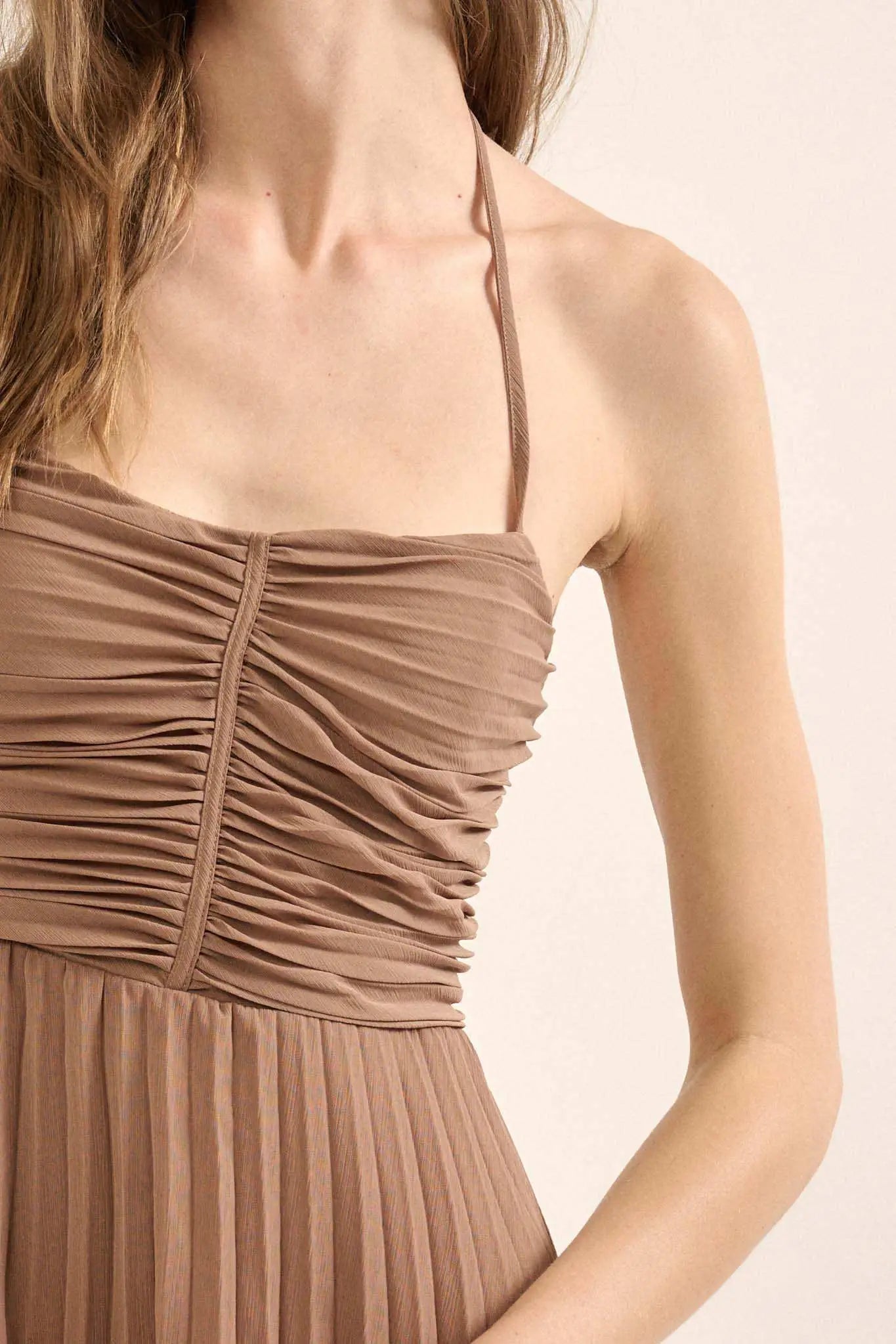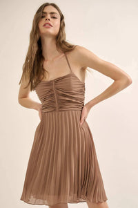 Mucho Mambo Accordion Pleated Halter Mini Dress