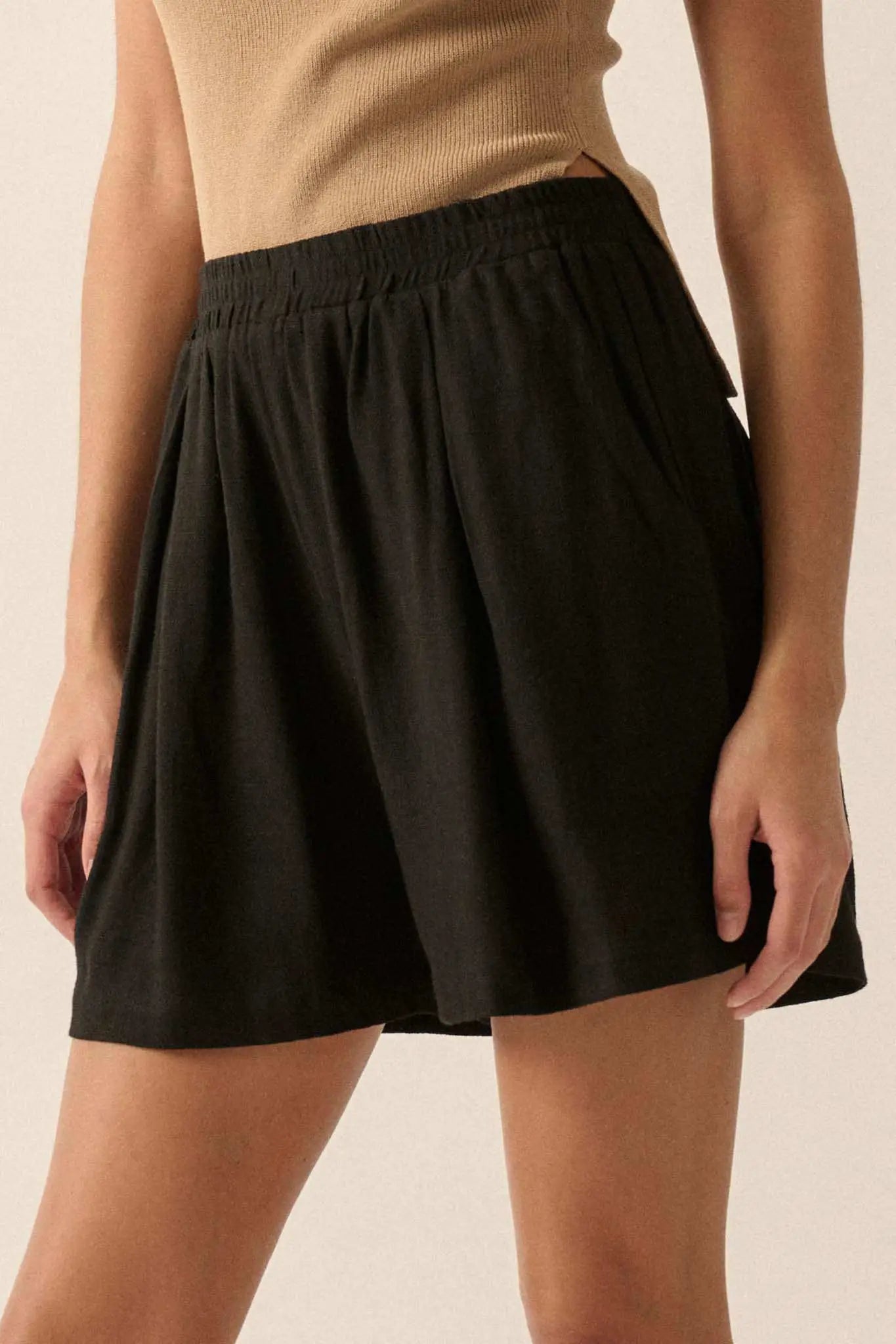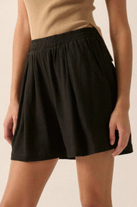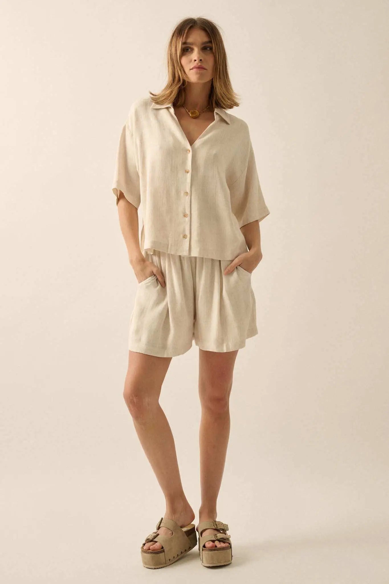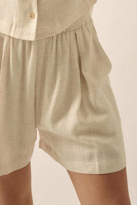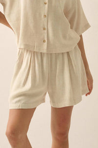 Natural Order Linen-Blend Pleated Wide-Leg Shorts
