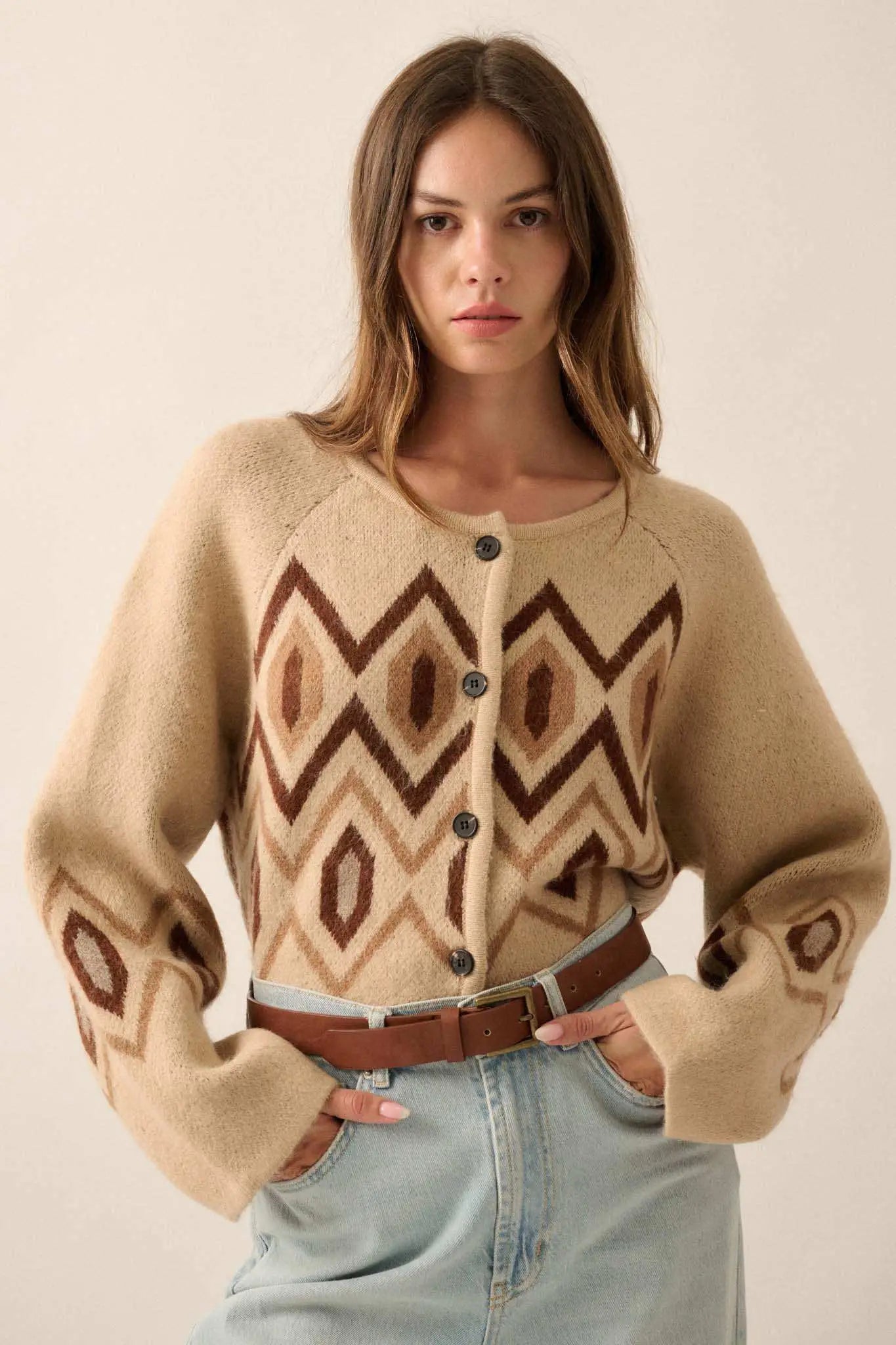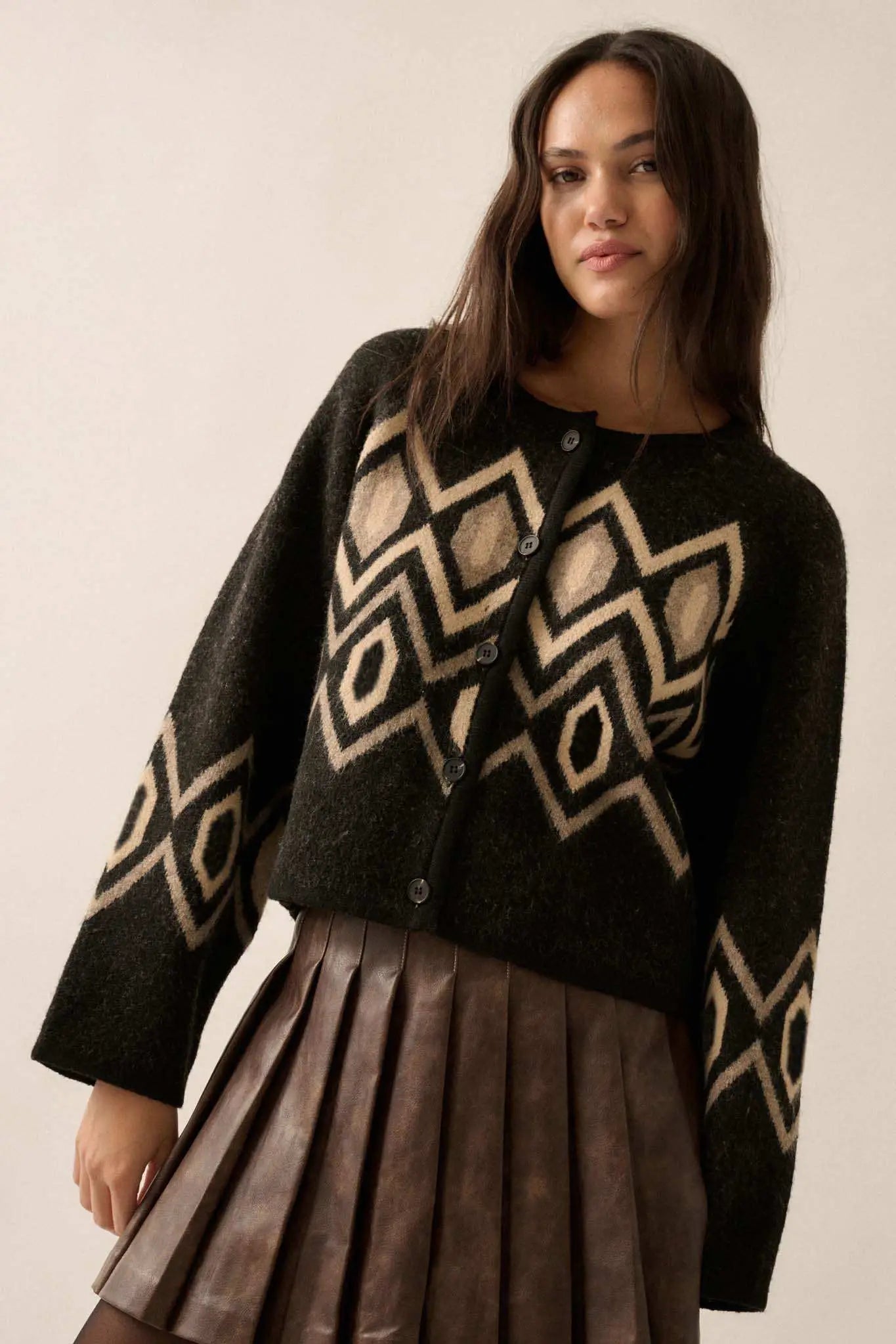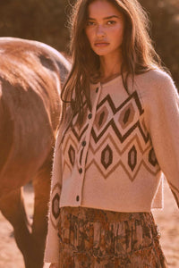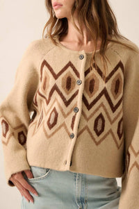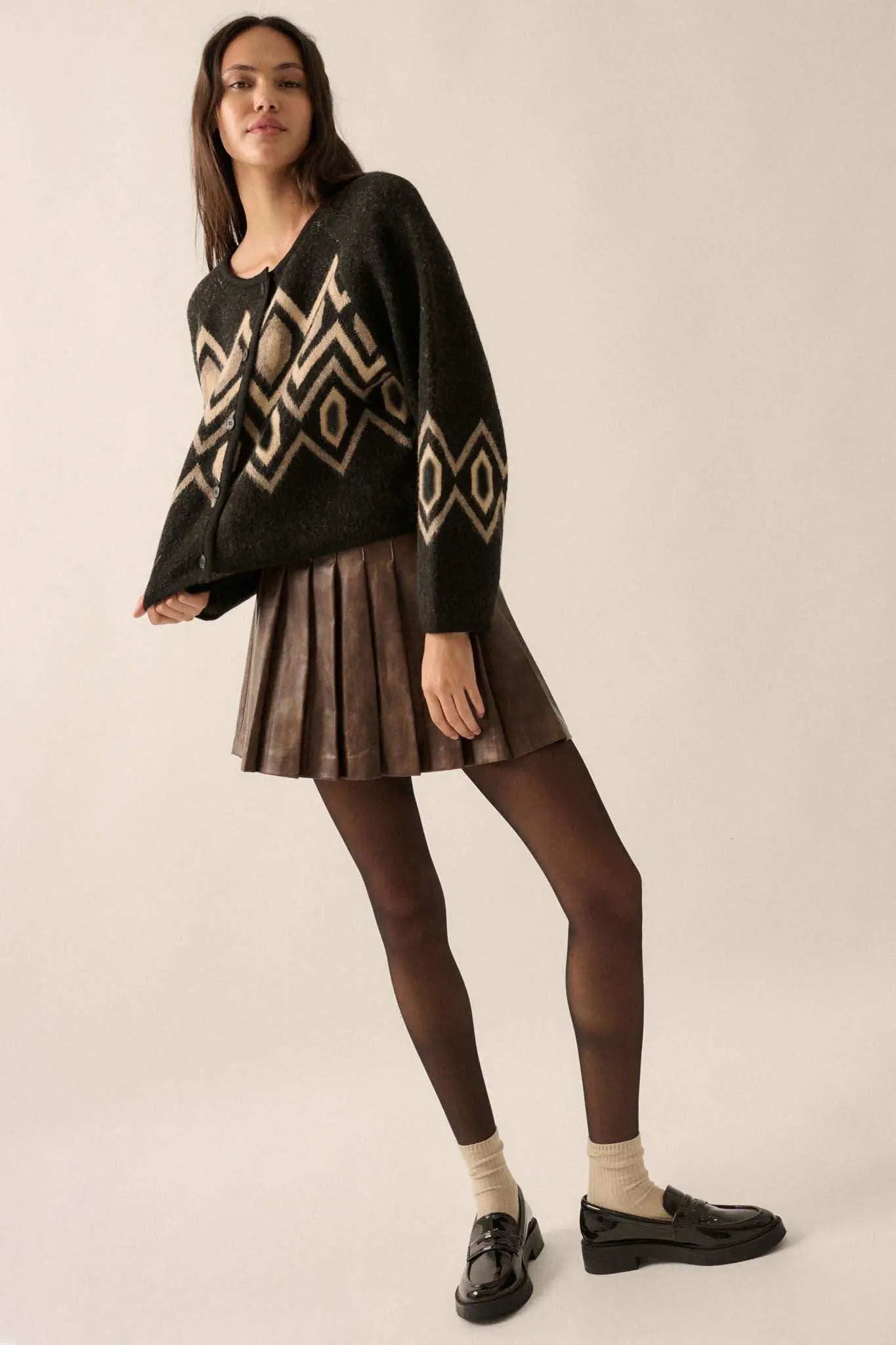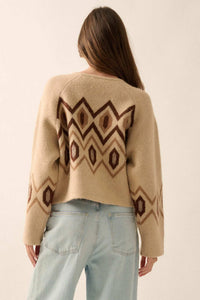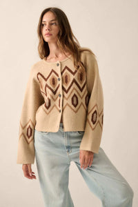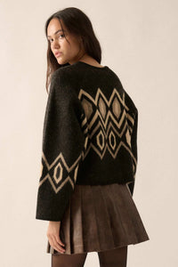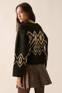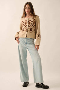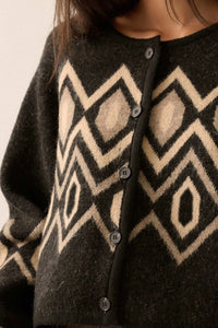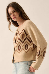 • Geometric pattern knit cardigan sweater.