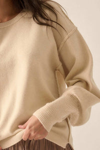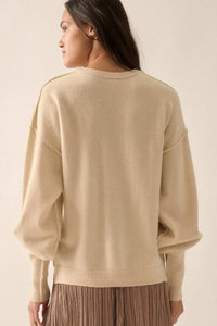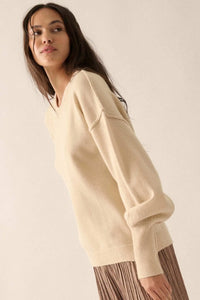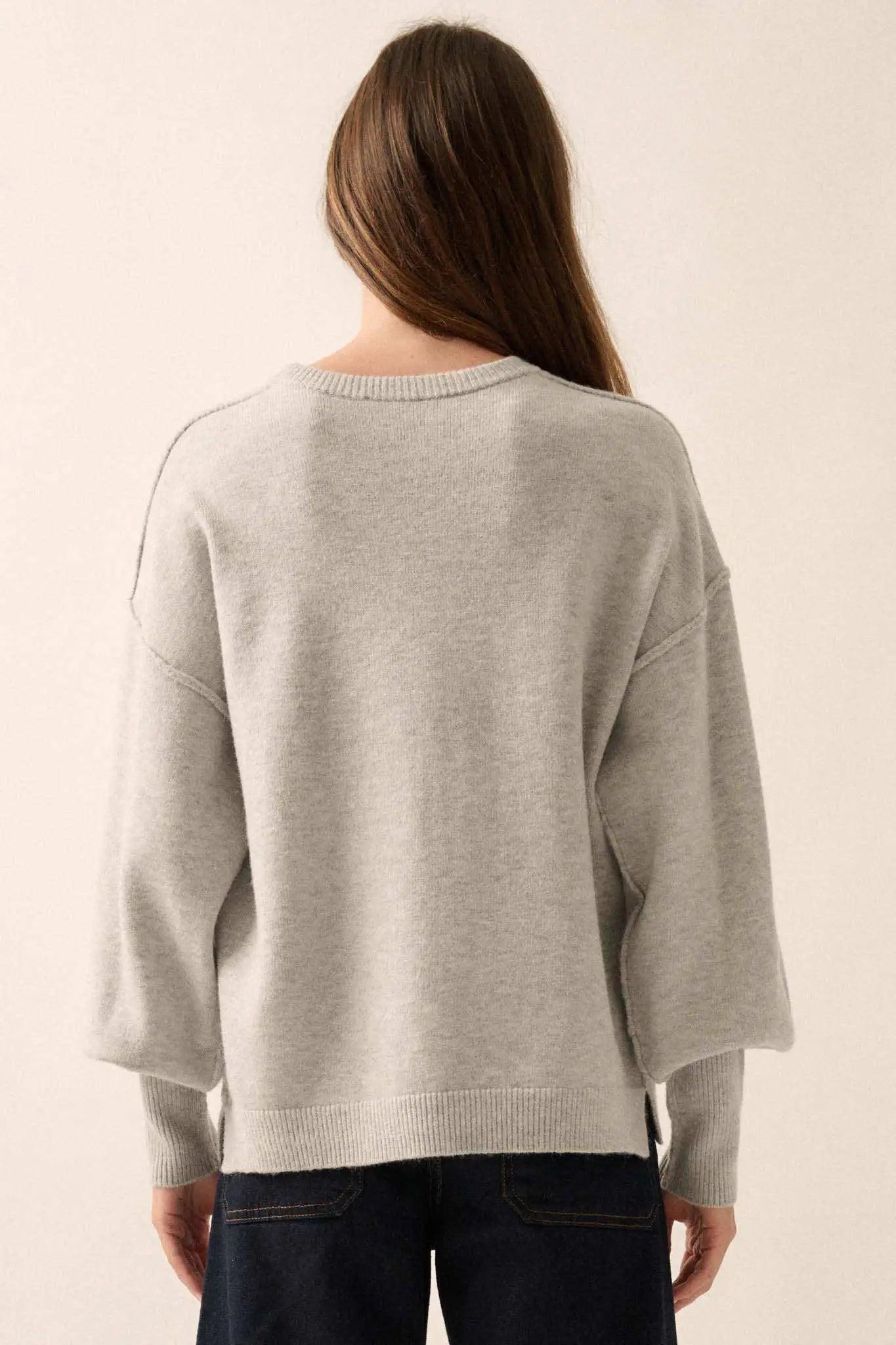 Old Soul Exposed-Seam Bishop-Sleeve Sweater - ShopPromesa