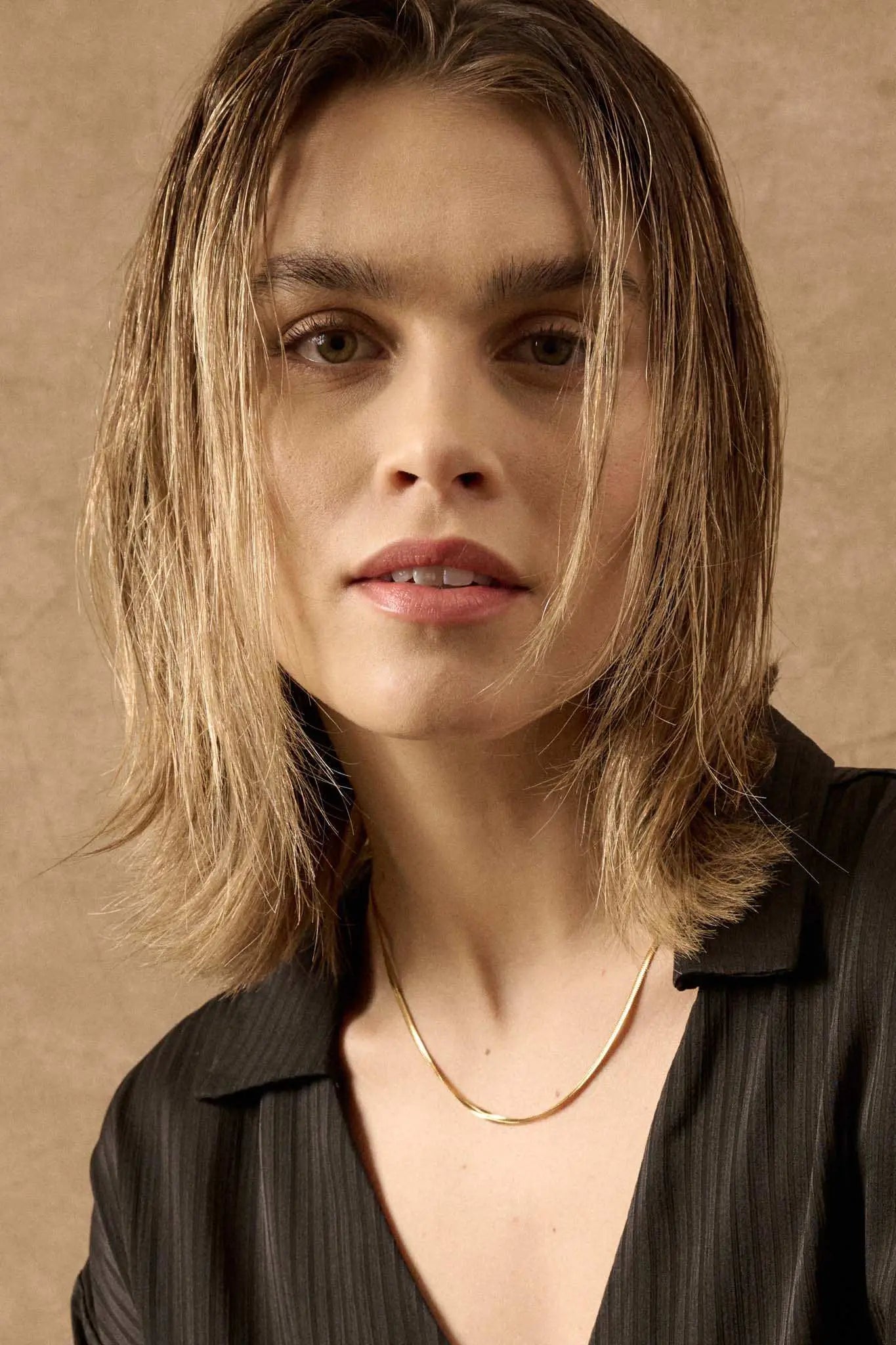 - Flat snake chain necklace.