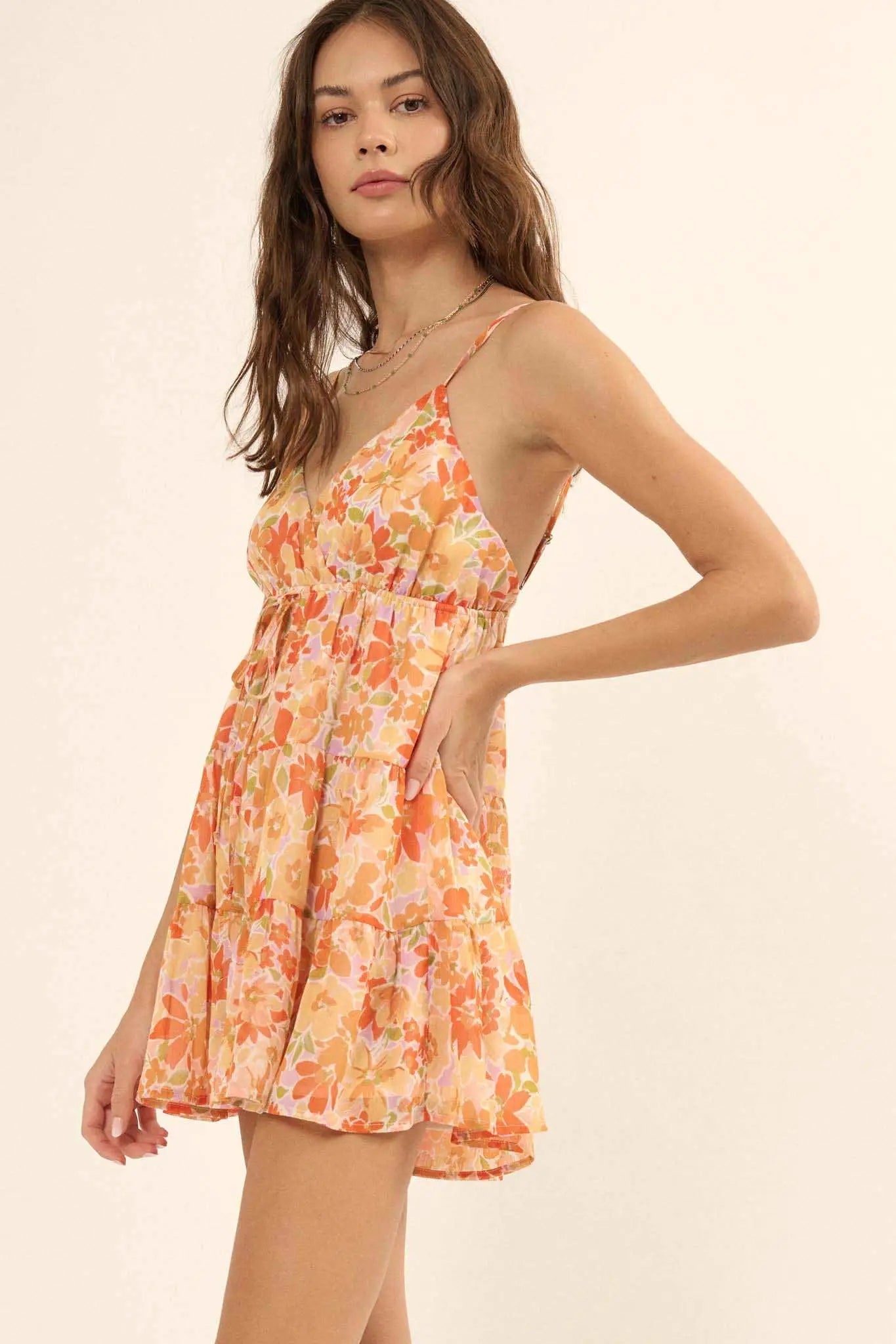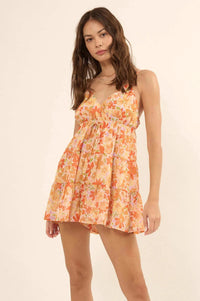 Peach Blossoms Floral Chiffon Tiered Ruffle Romper - ShopPromesa