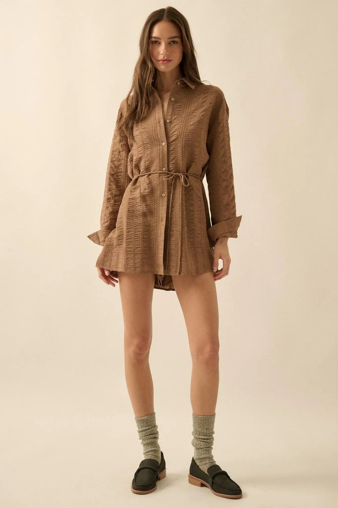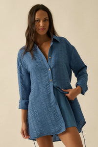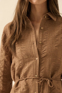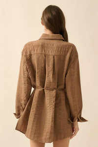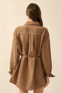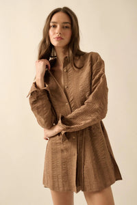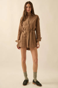 Perfect Day Smocked Button-Up Belted Shirt Romper - ShopPromesa