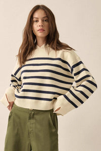 - Breton stripe knit sweater.