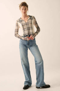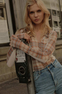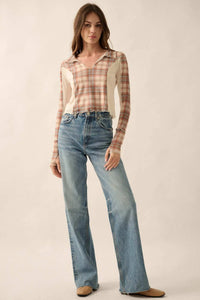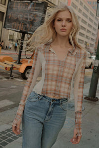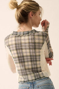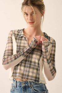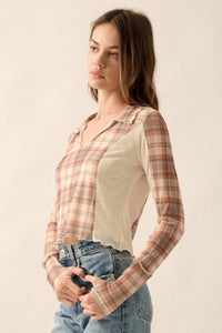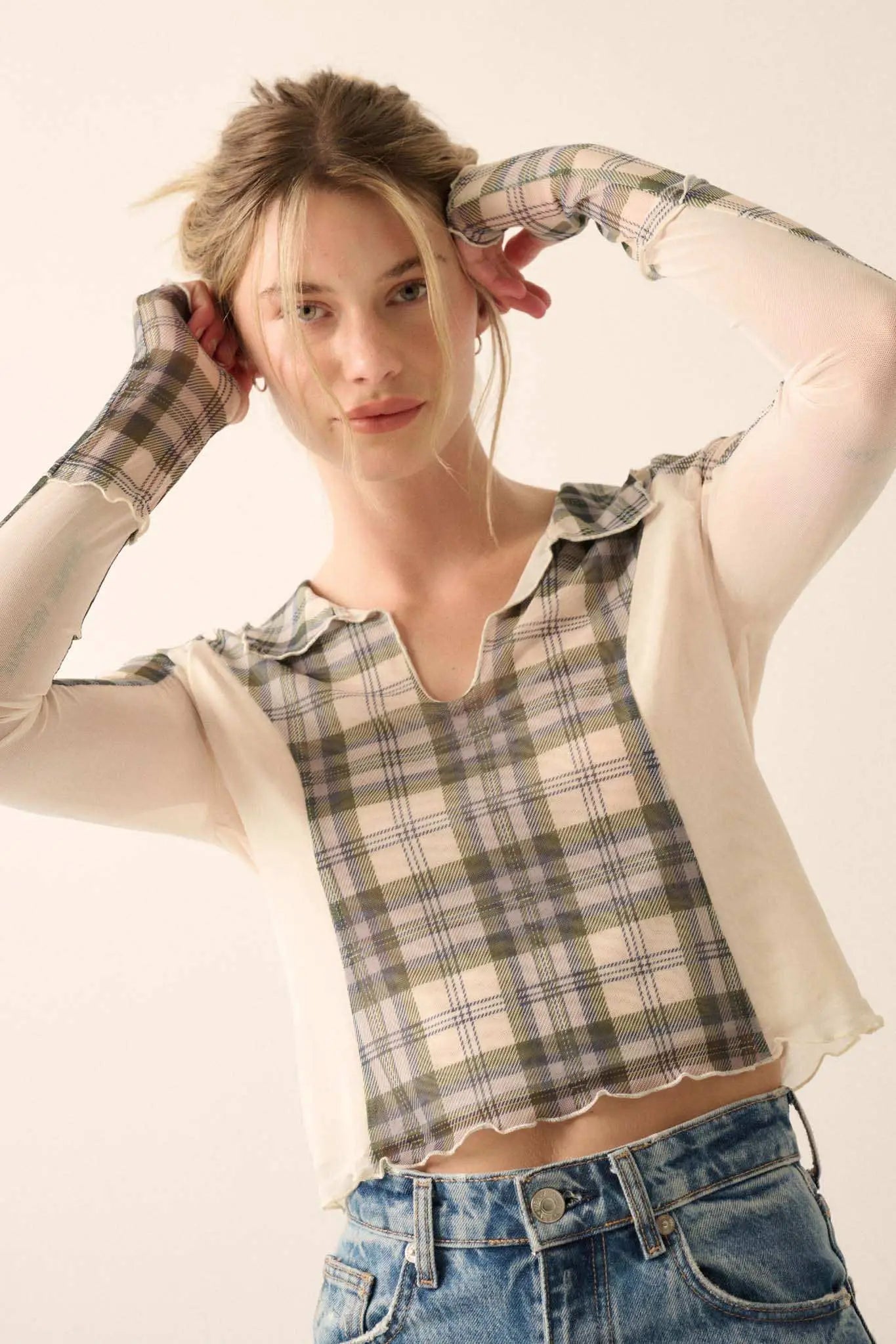Plaid Habits Colorblock Mesh Thumbhole Top