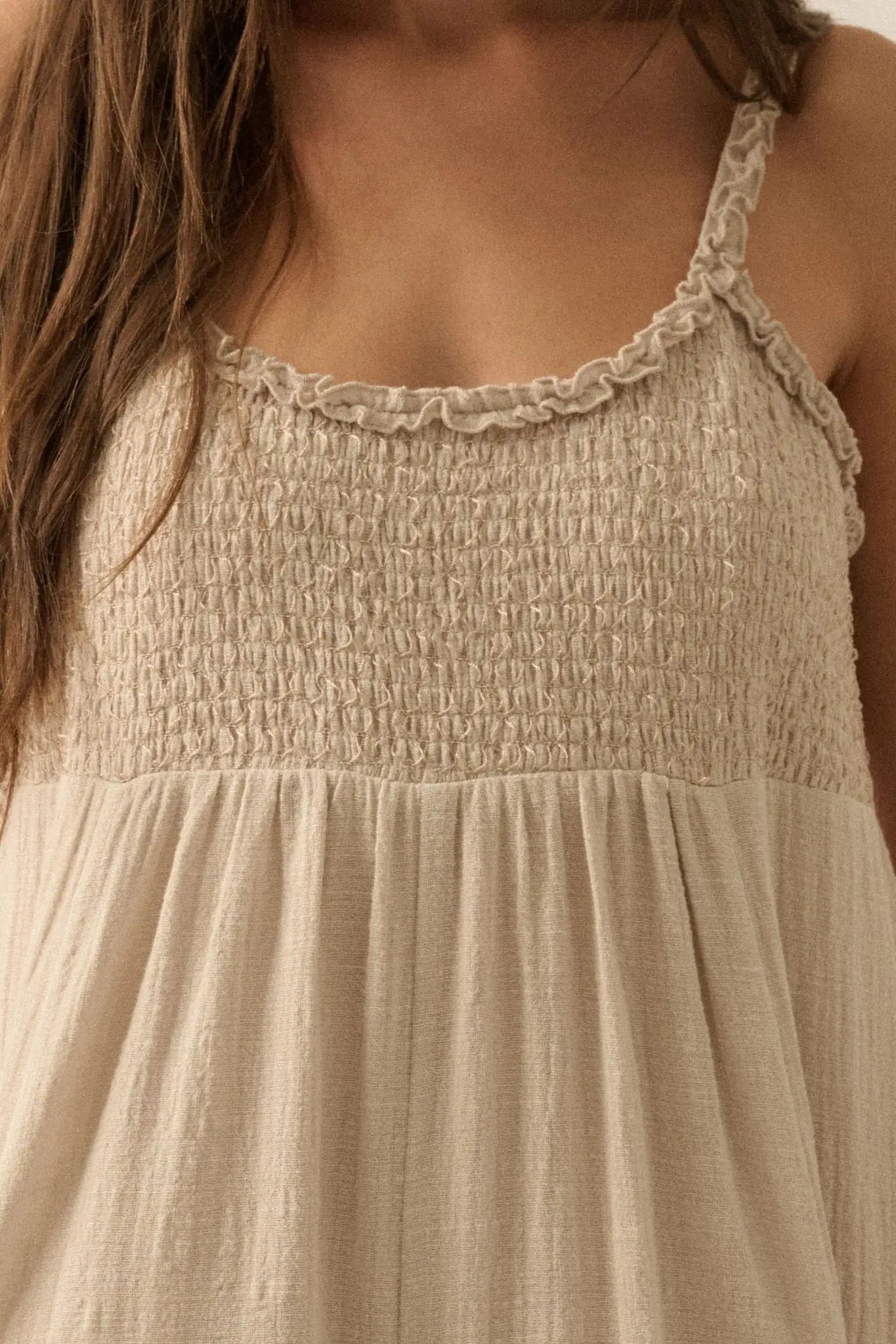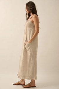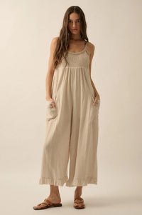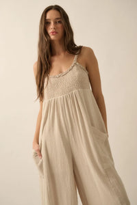 Play It Cool Textured Cotton Wide-Leg Jumpsuit