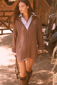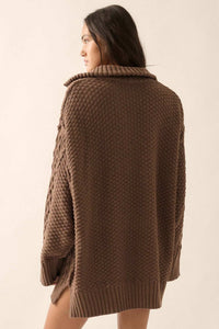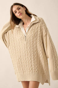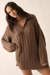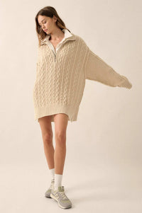 Plot Twist Half-Zip Cable Knit Sweater Dress