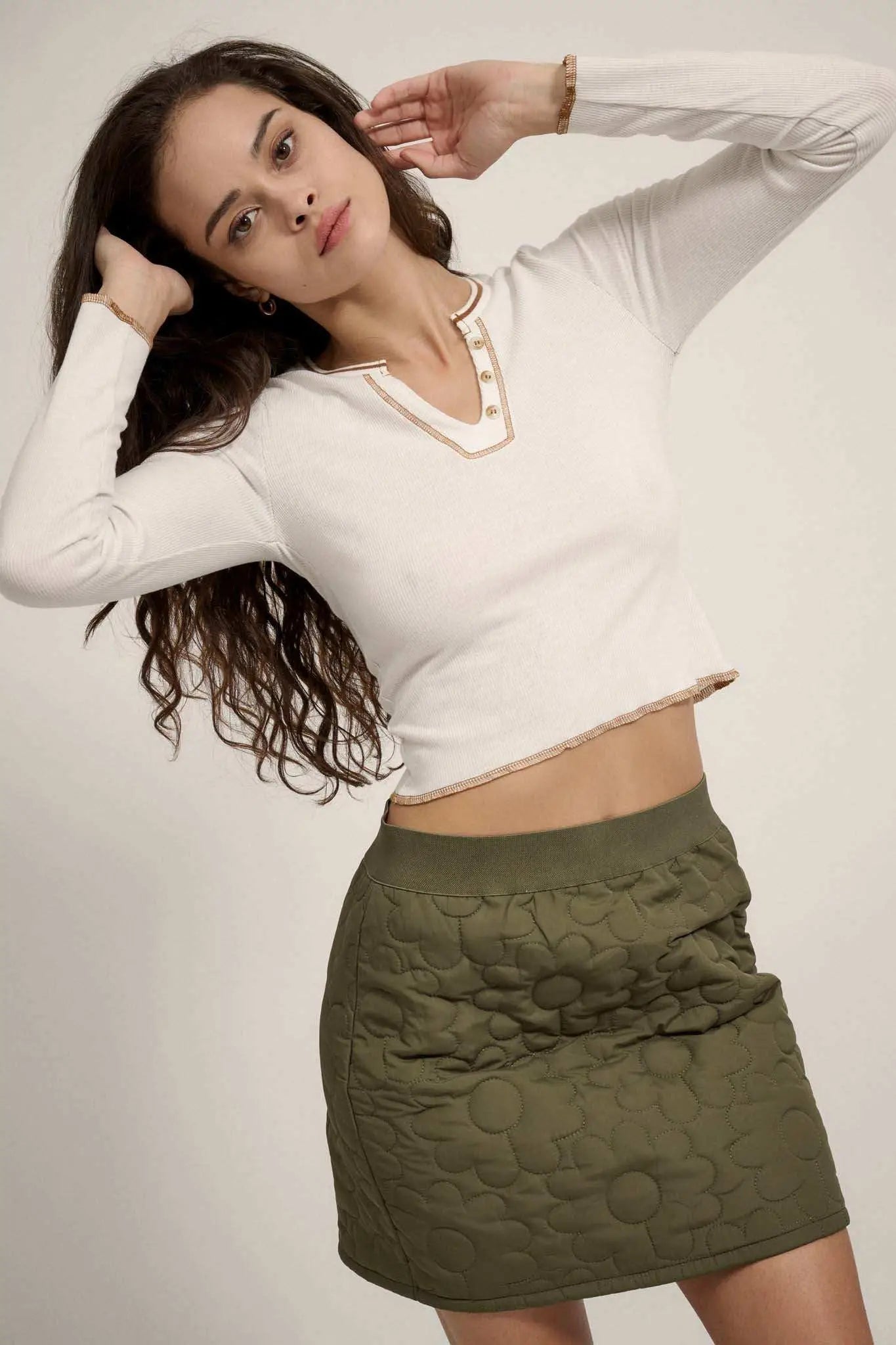 Plush Petals Floral Quilted A-Line Mini Skirt