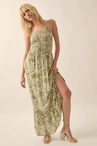 Pretty Palms Tropical Floral Smocked Maxi Dress