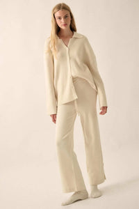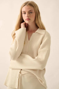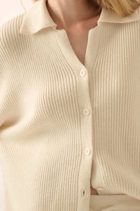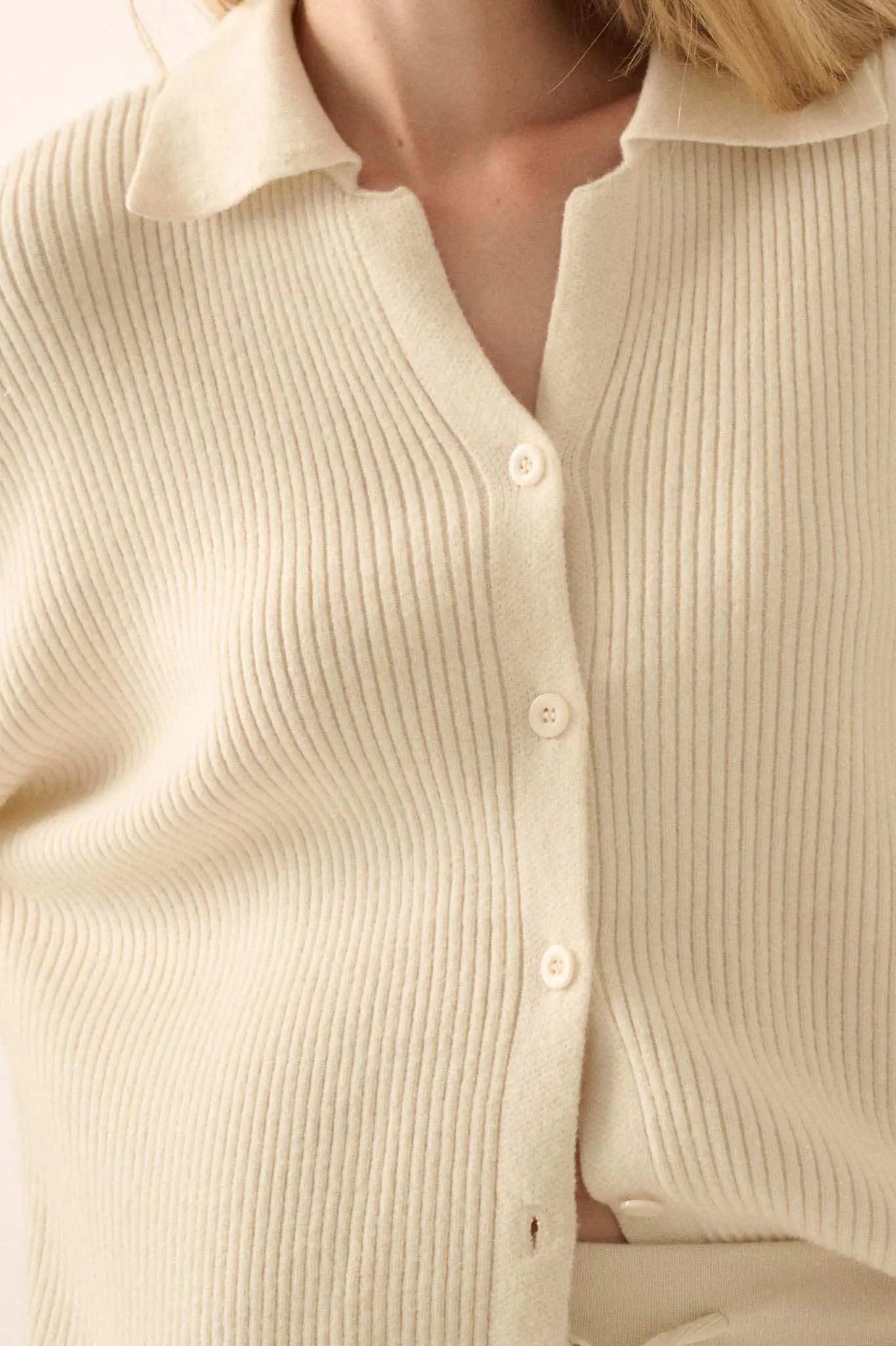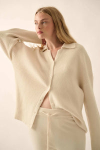 - Solid, ribbed knit cardigan sweater.