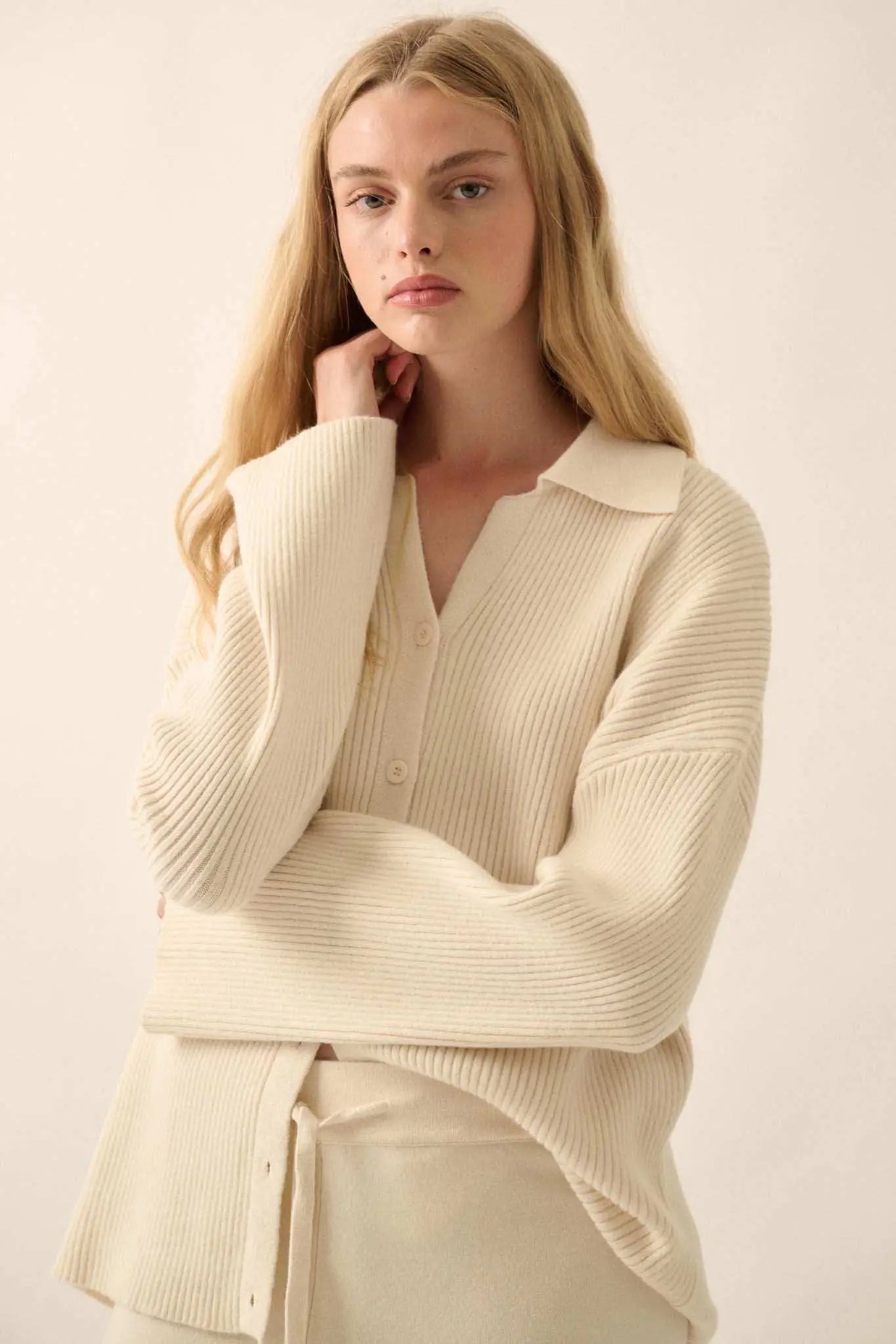Promise the Label Rib-Knit Oversize Cardigan Sweater