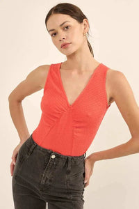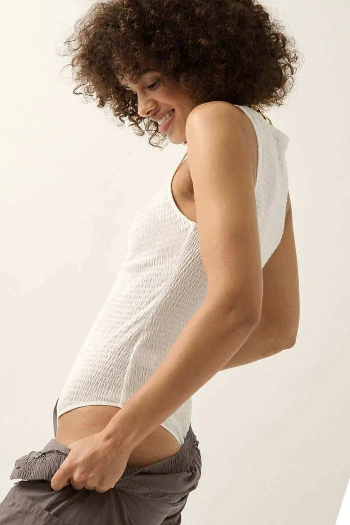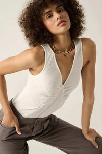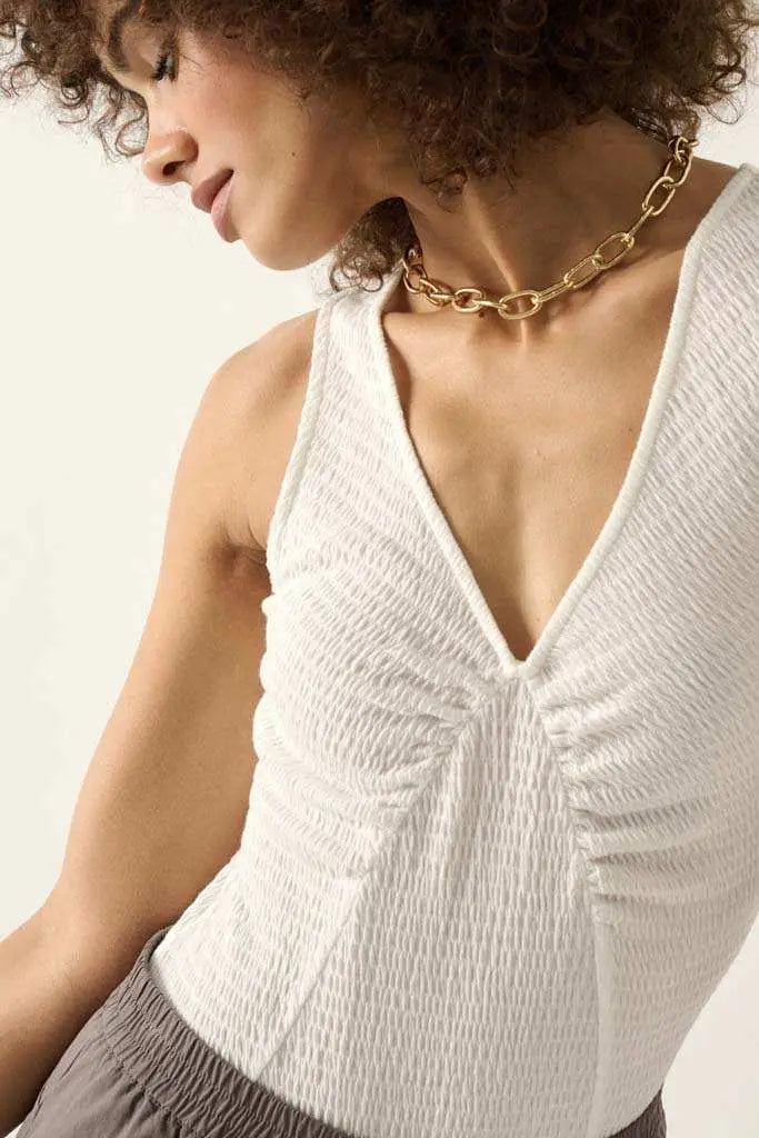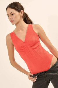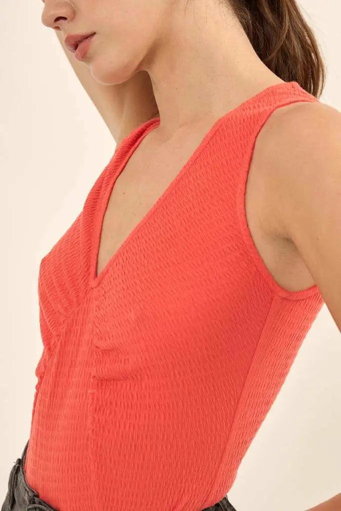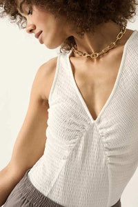 Smocked Jersey Ruched V-Neck Sleeveless Bodysuit - ShopPromesa