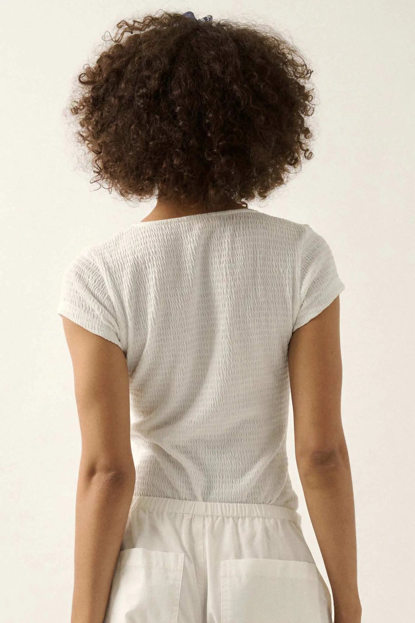 - Smocked jersey bodysuit.
