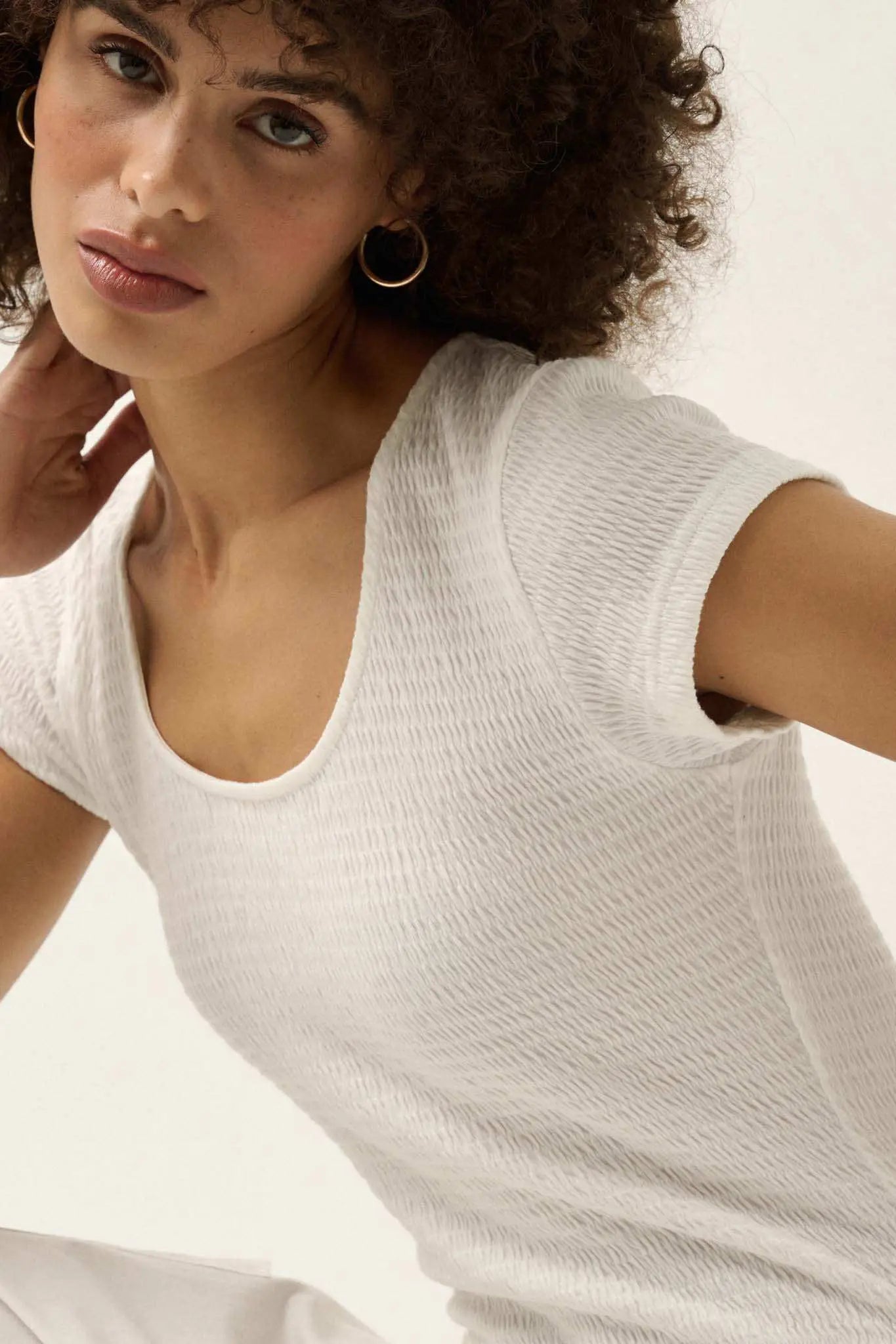 - Scoop neckline.