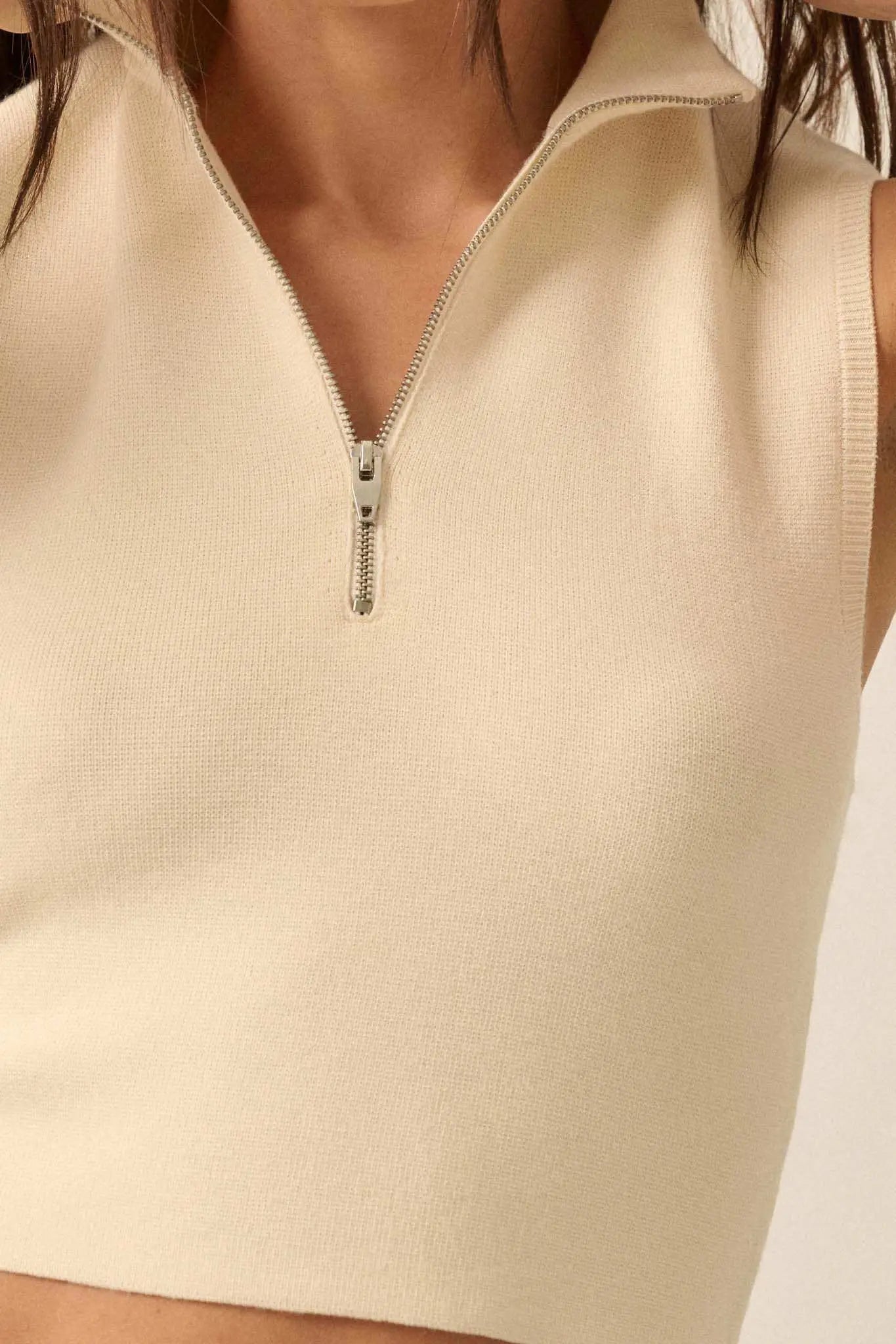 Quiet Strength Half-Zip Cropped Mock-Neck Tank Top