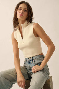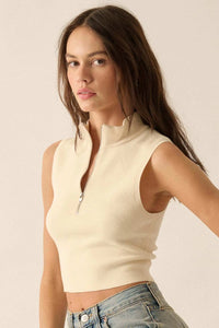 Quiet Strength Half-Zip Cropped Mock-Neck Tank Top - ShopPromesa