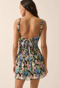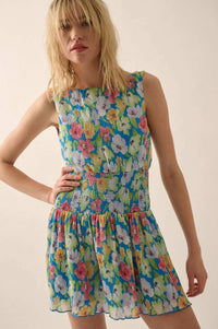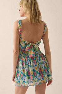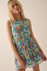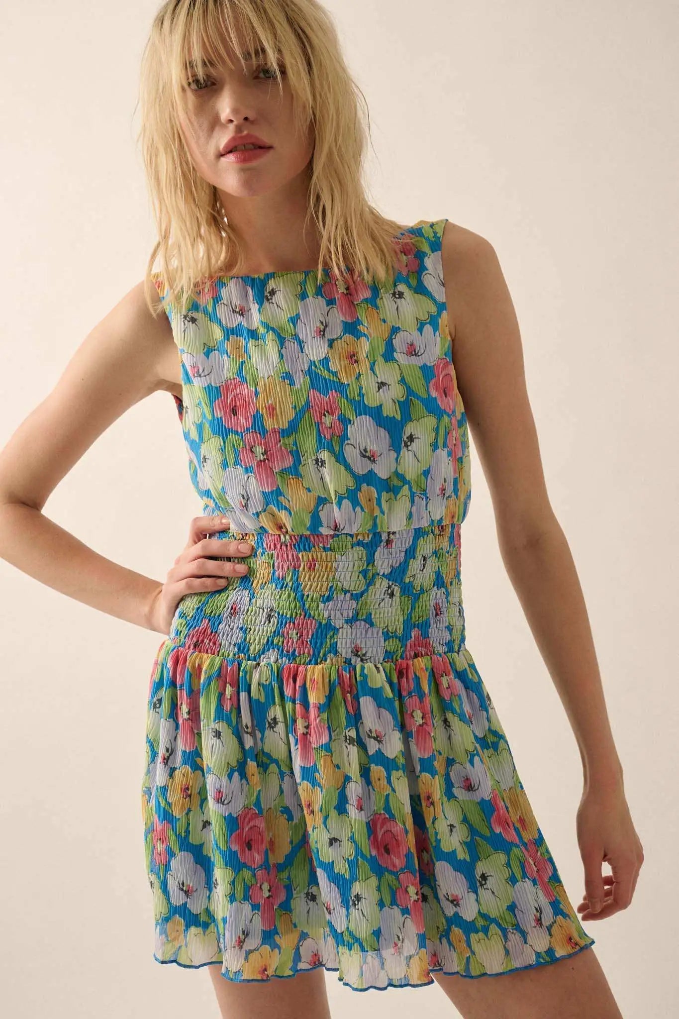 Rainbow Blooms Pleated Floral Mini Dress - ShopPromesa