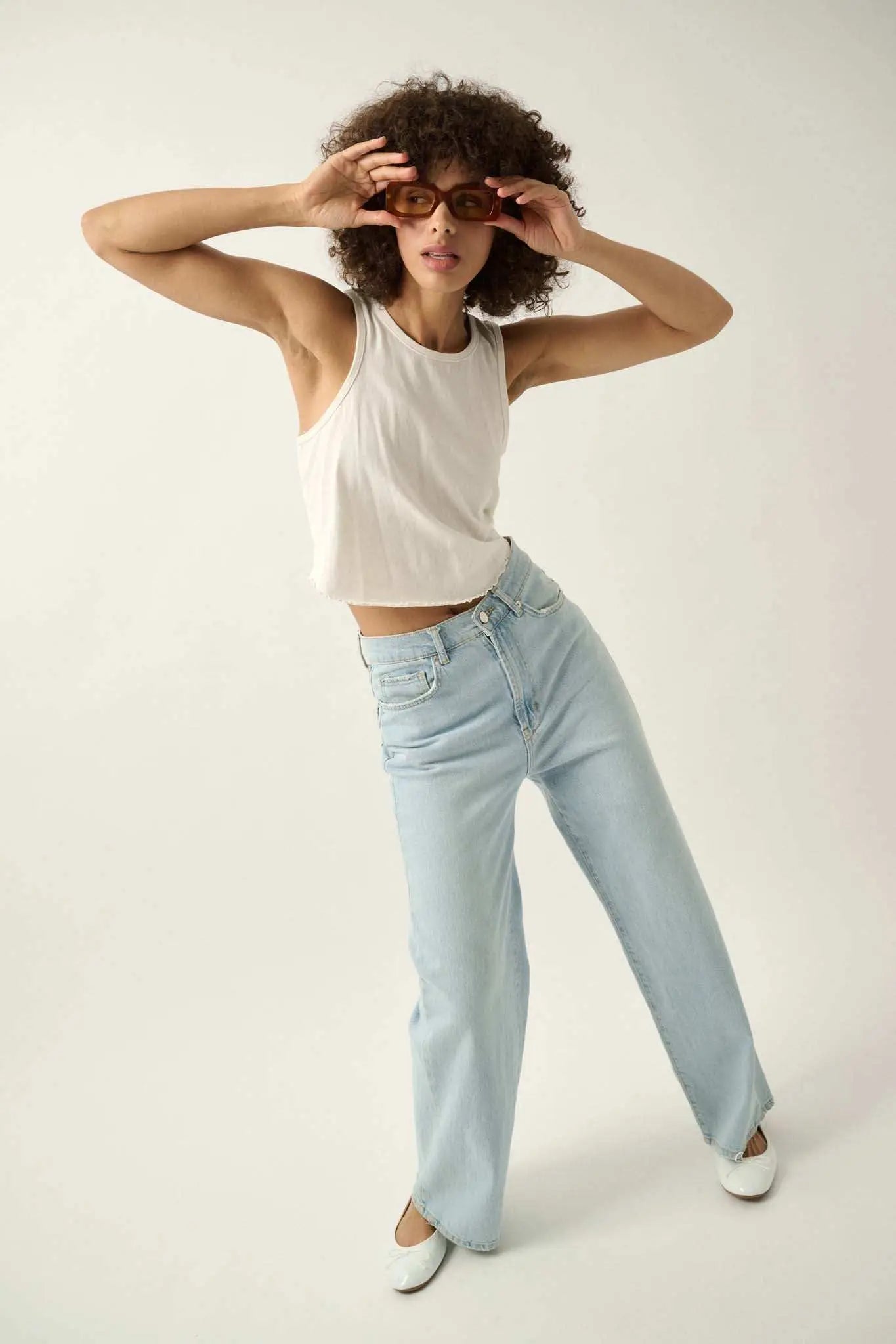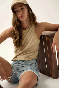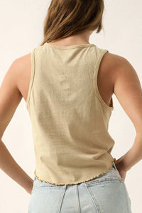 Real Talk Vintage-Wash Lettuce-Edge Tank Top - ShopPromesa