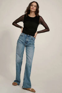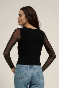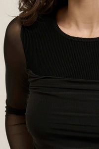 - Long, sheer mesh sleeves.