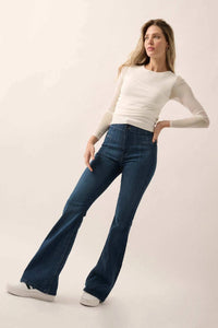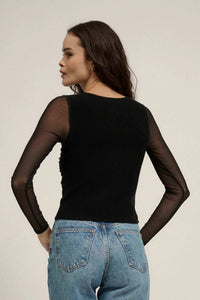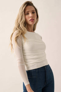 Shaper Fit Mesh-Sleeve Gathered Rib-Knit Top