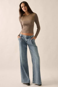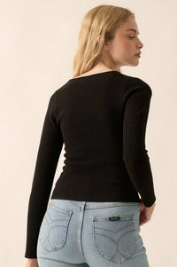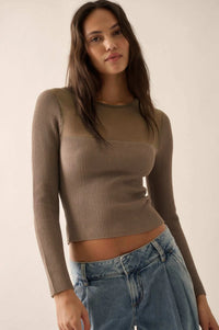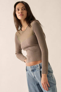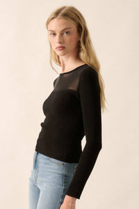 Shaper Fit Mesh Yoke Ribbed Knit Top