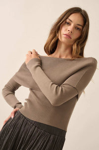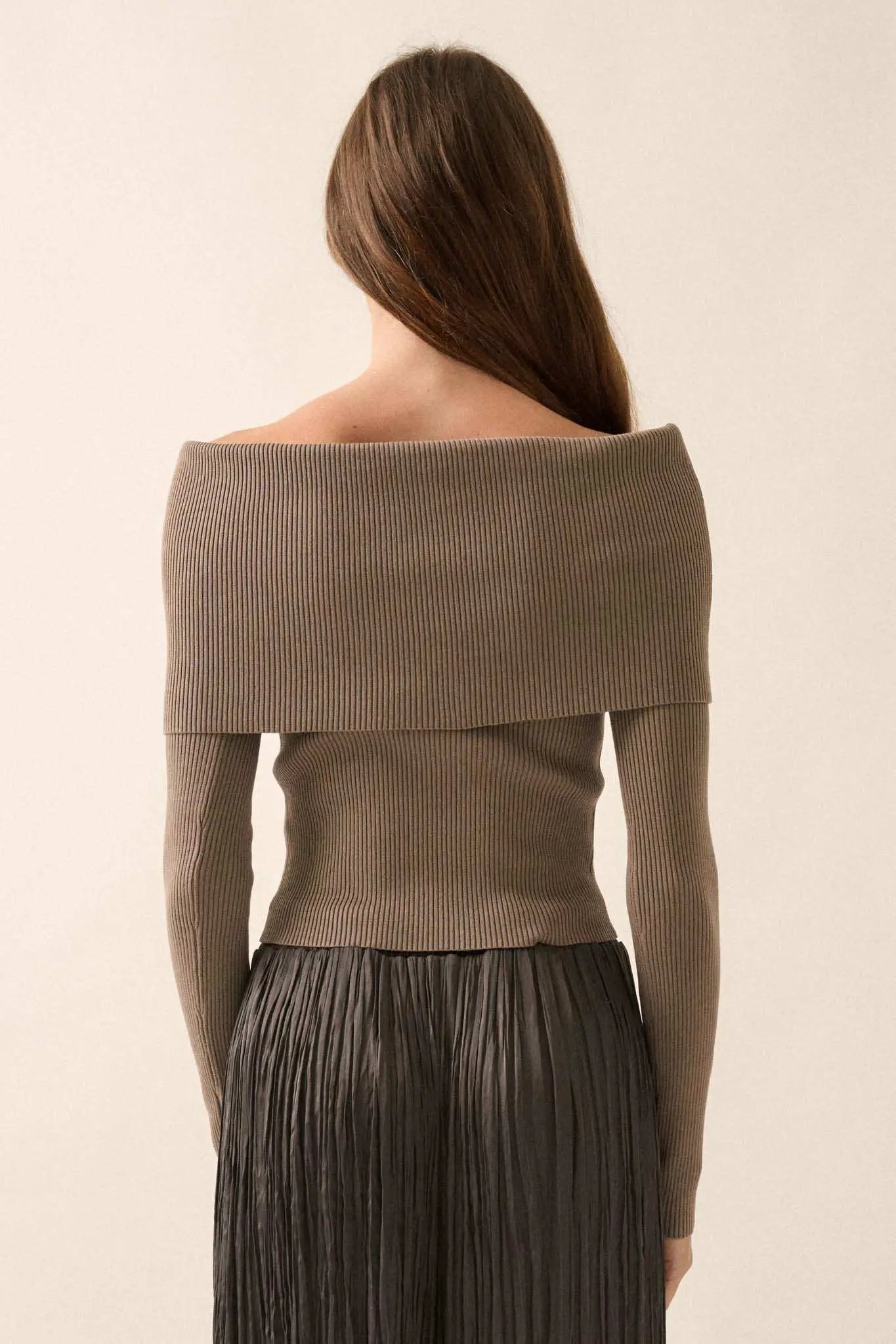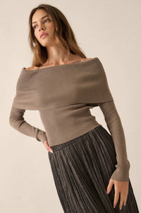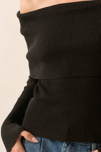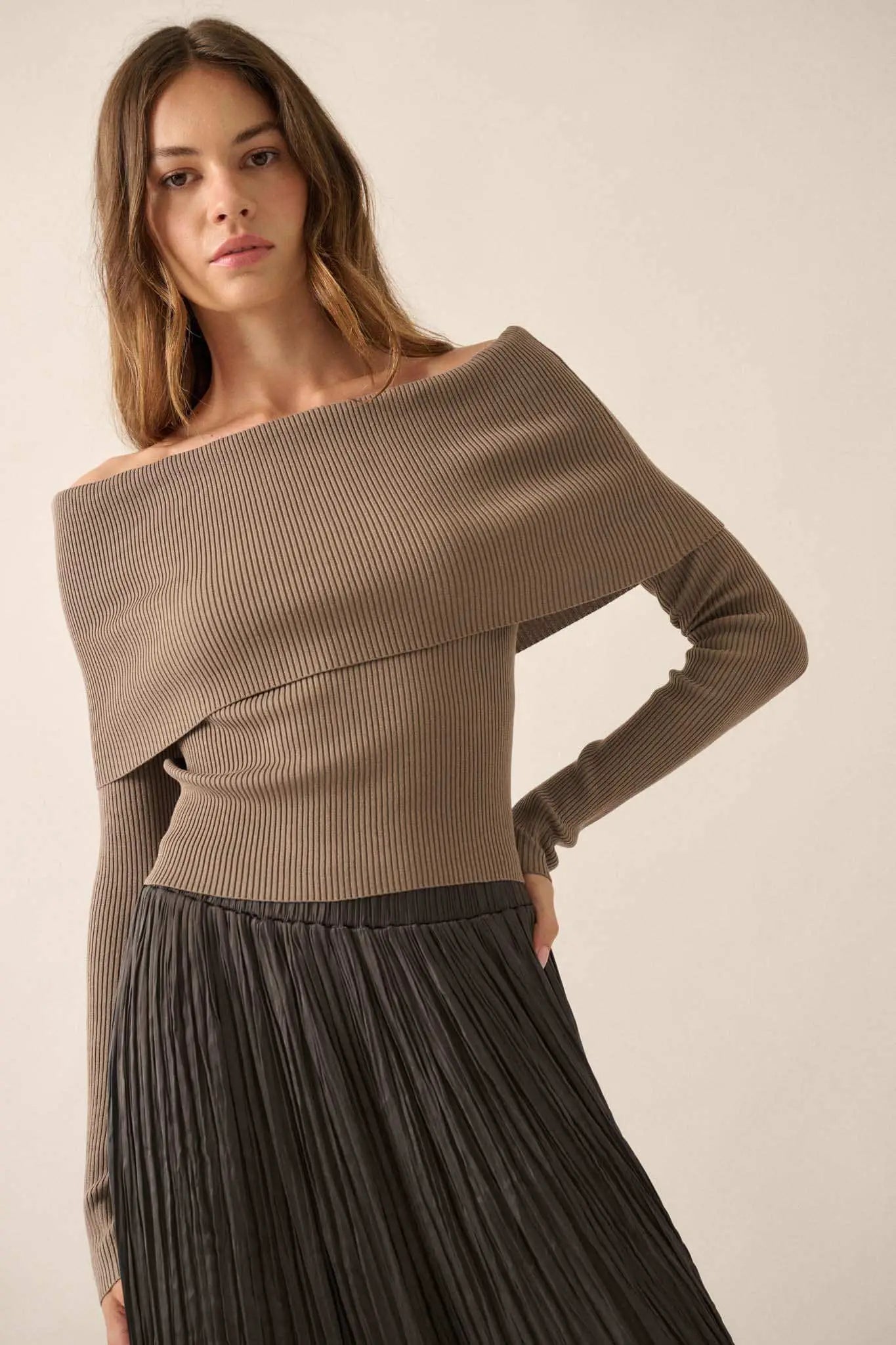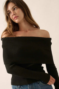 Shaper Fit Rib-Knit Off-Shoulder Foldover Top